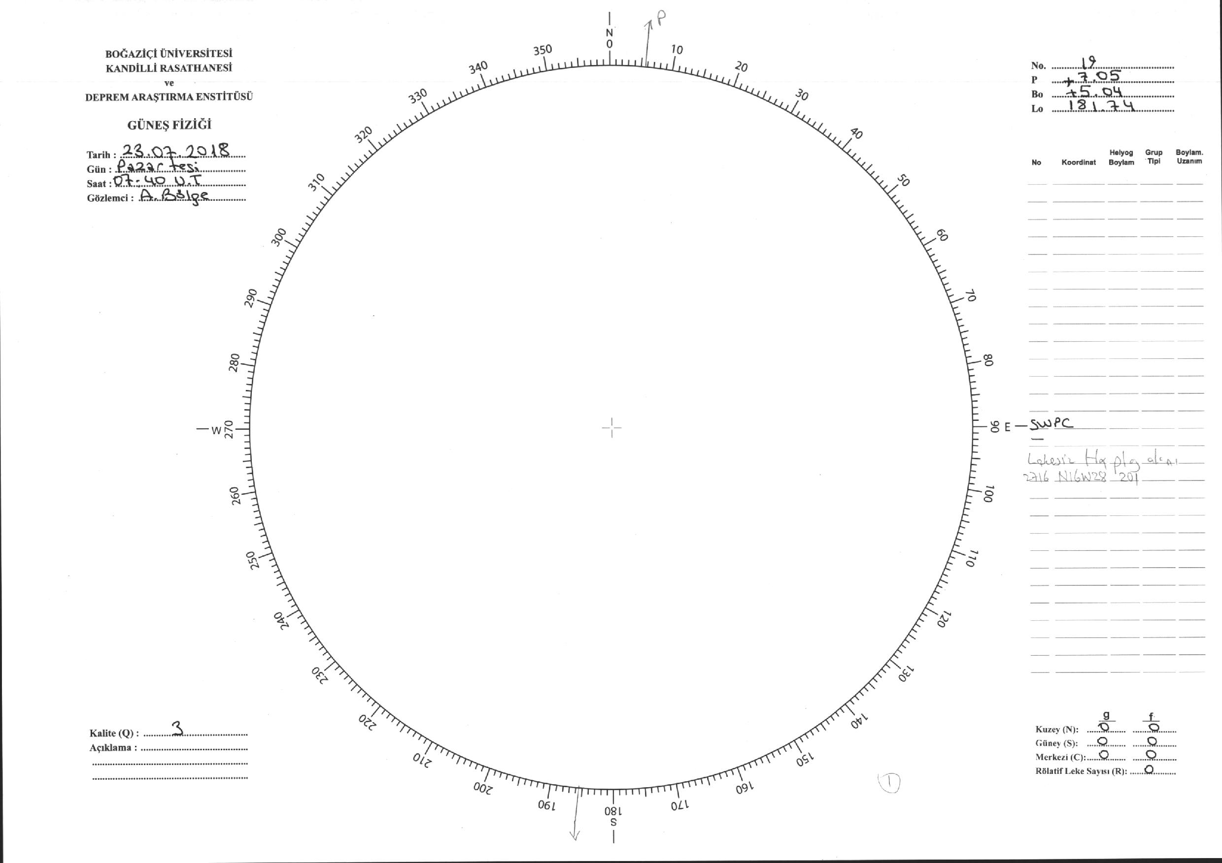 Güneş Lekesi Çizimi - 23.07.2018