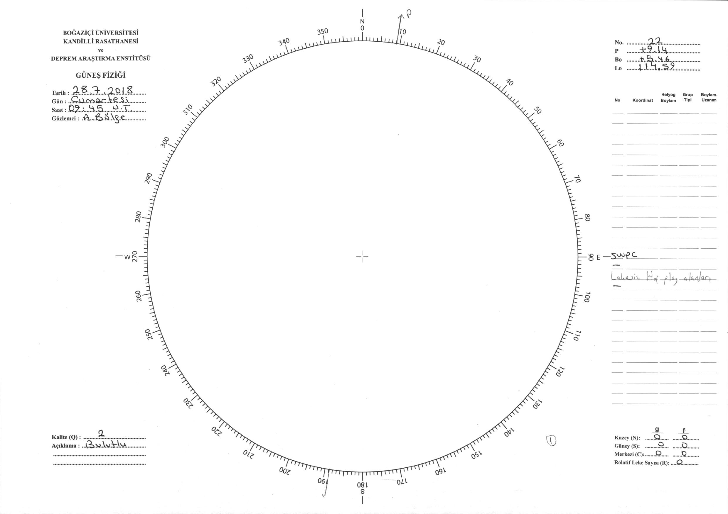 Güneş Lekesi Çizimi - 28.07.2018