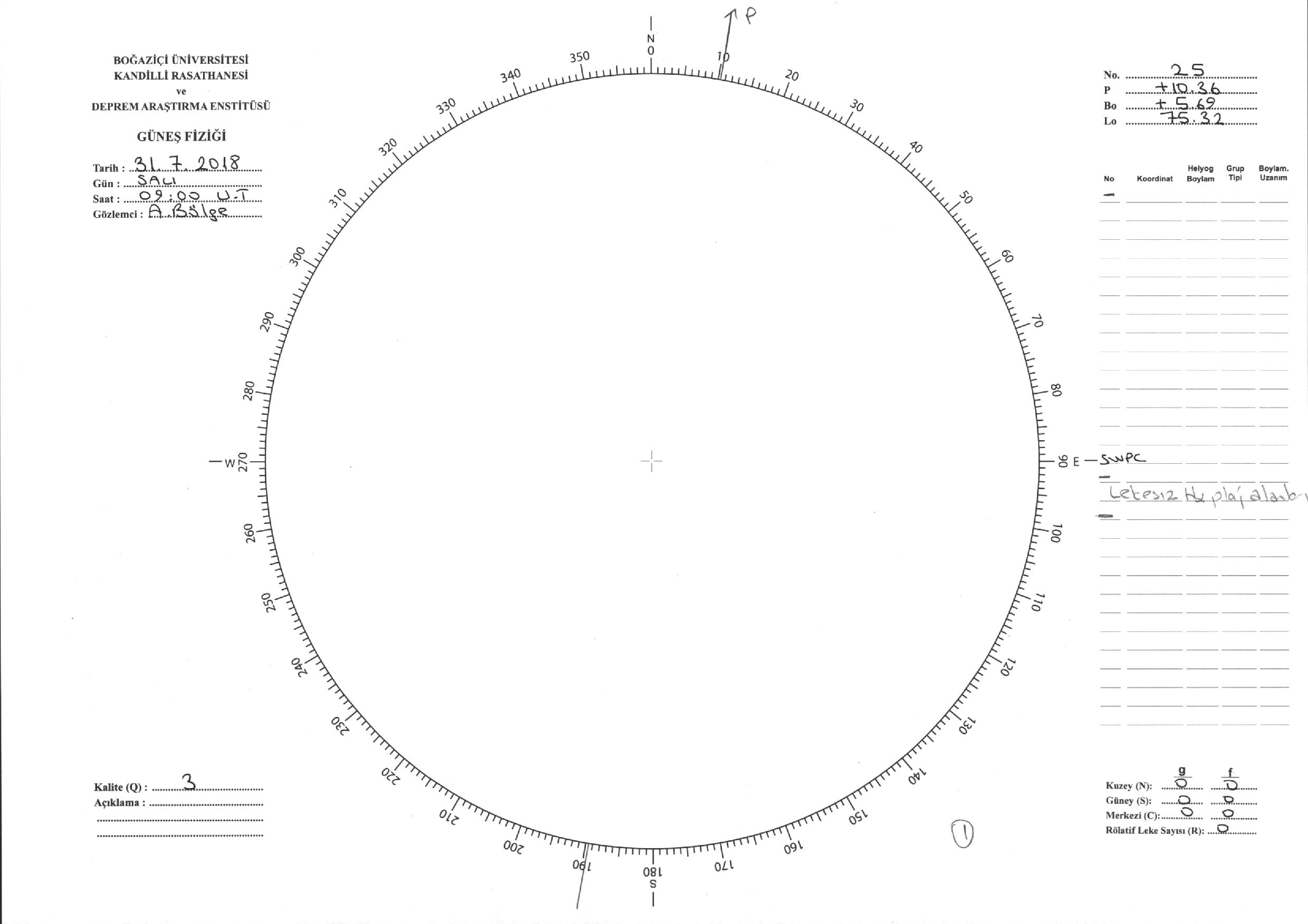 Güneş Lekesi Çizimi - 31.07.2018