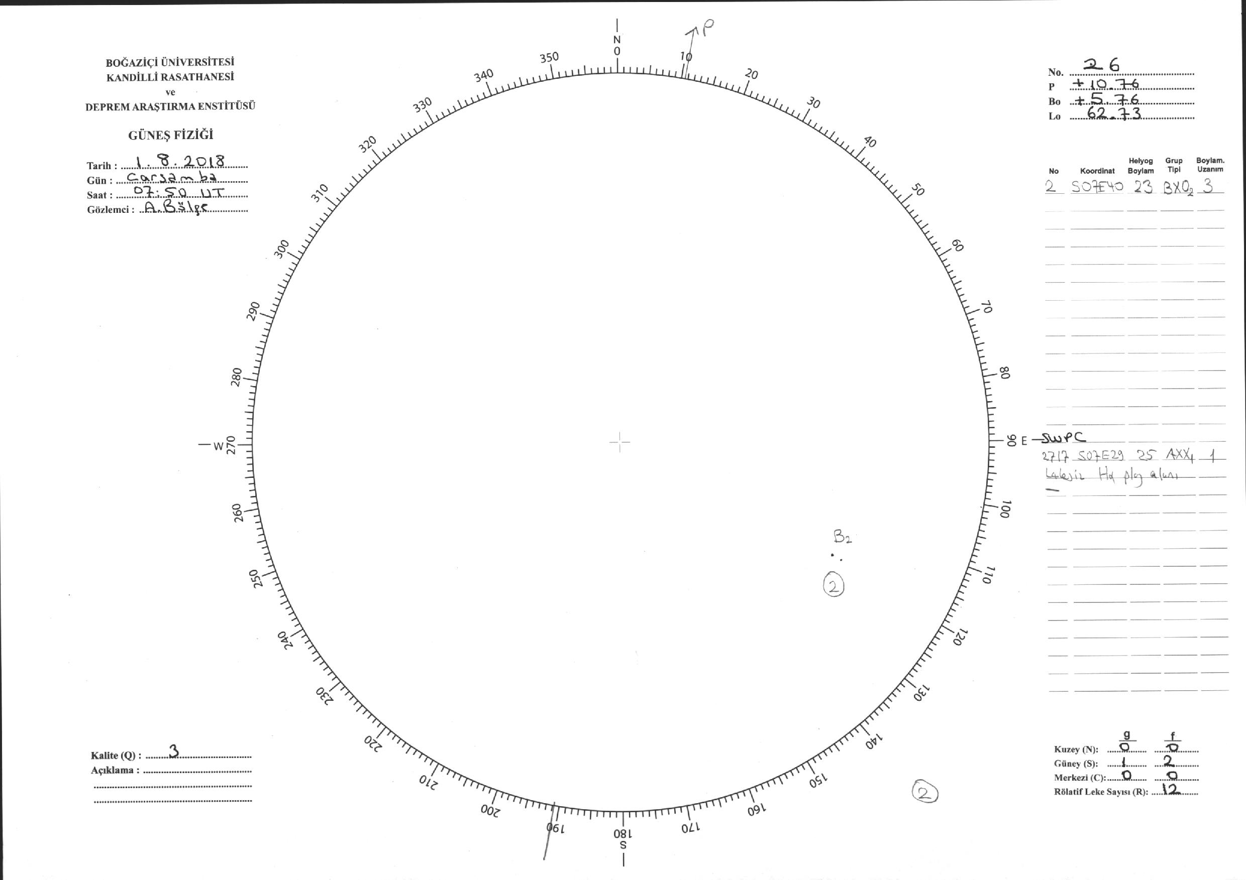 Güneş Lekesi Çizimi - 01.08.2018