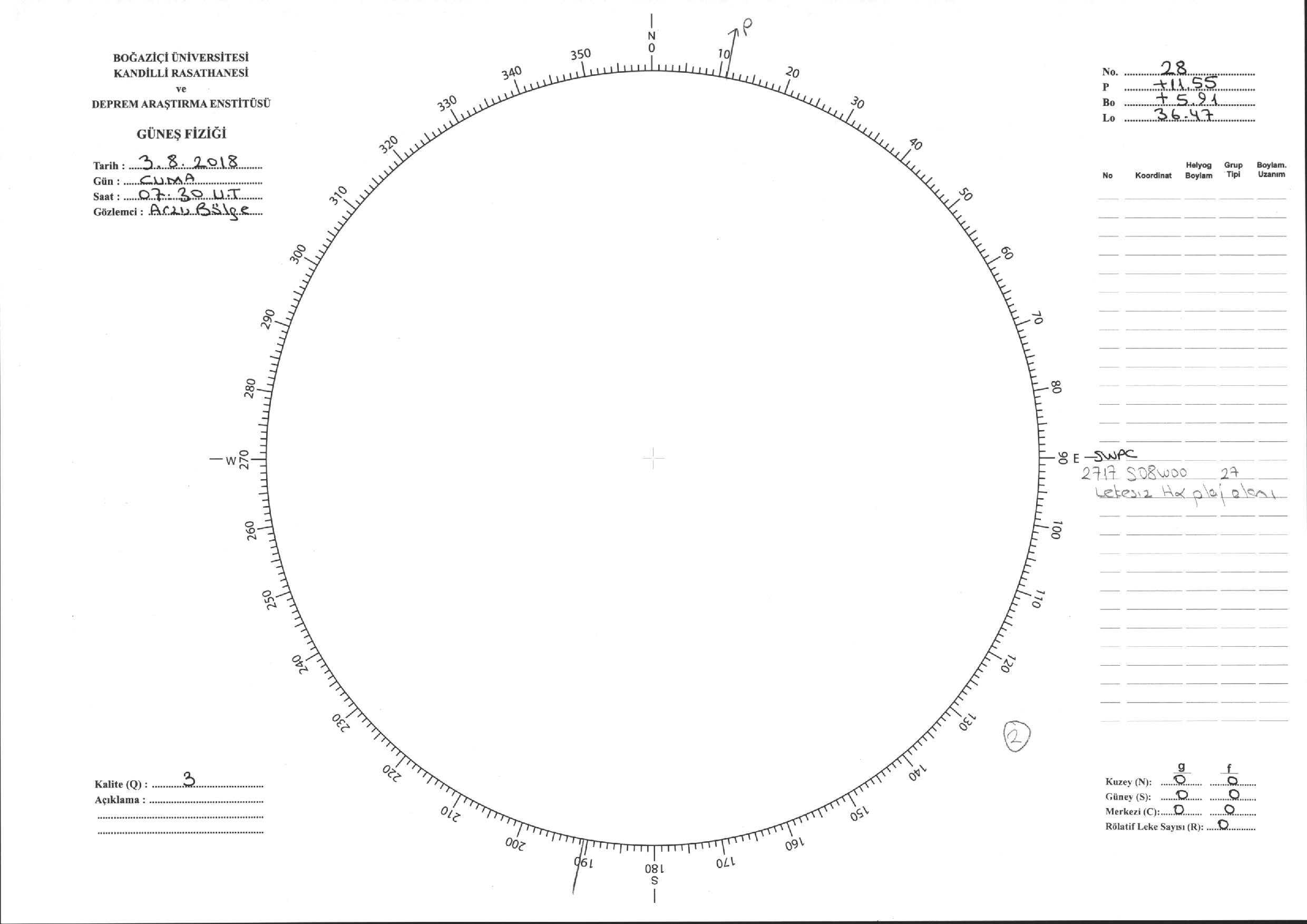 Güneş Lekesi Çizimi - 03.08.2018