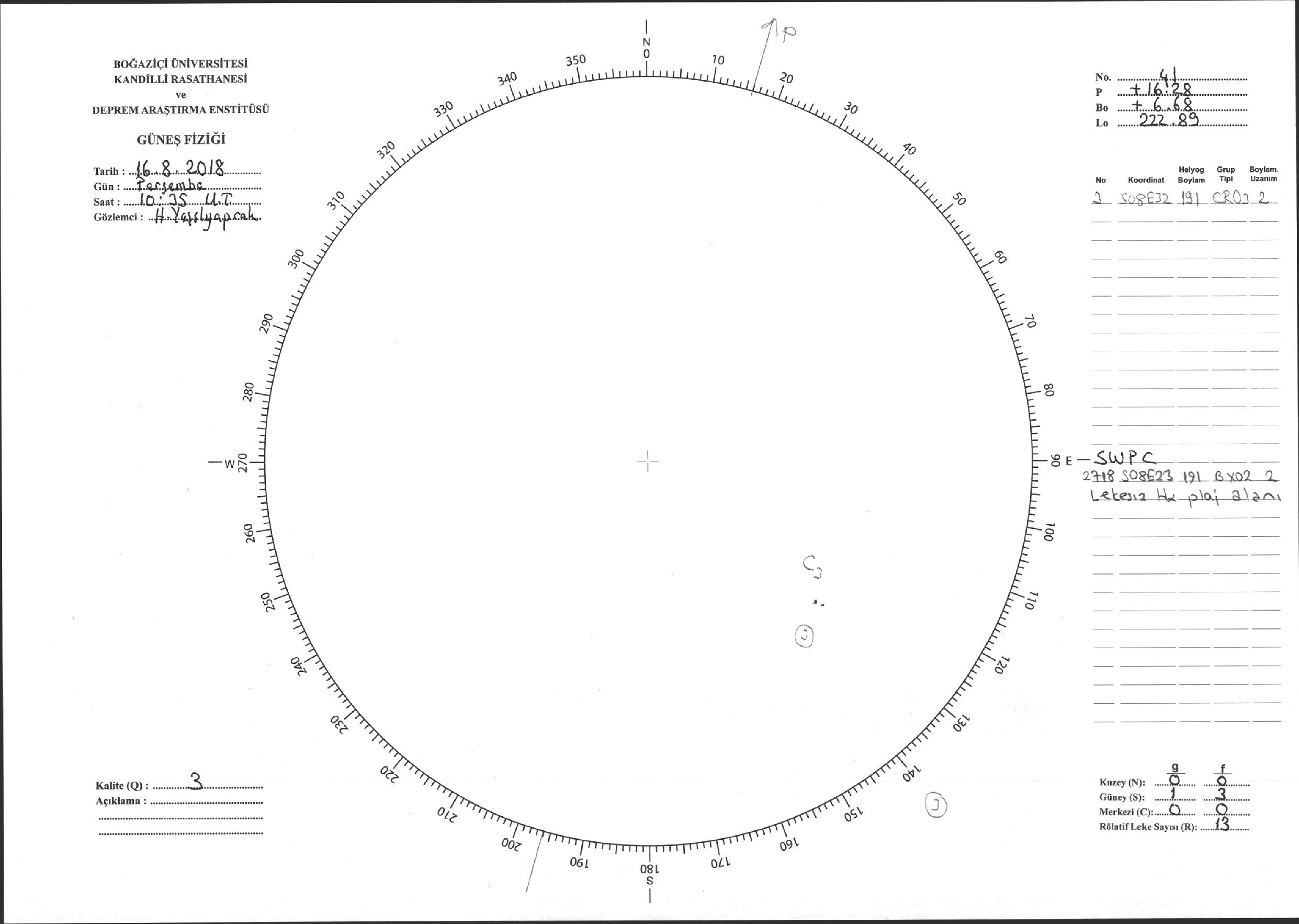 Güneş Lekesi Çizimi - 16.08.2018