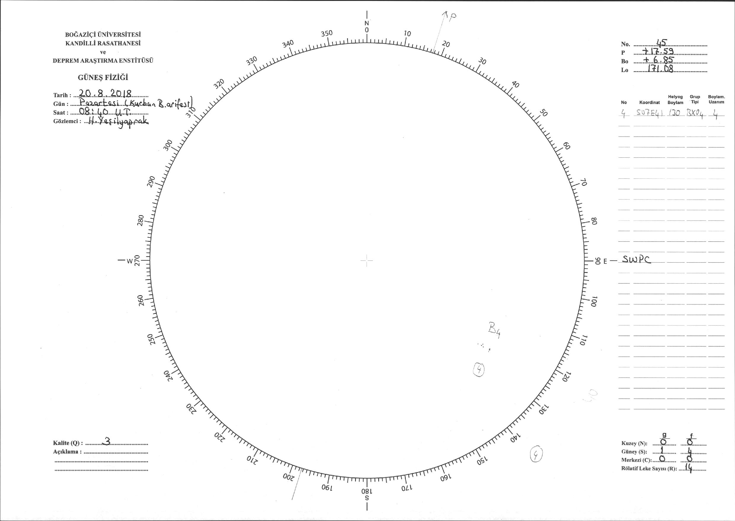 Güneş Lekesi Çizimi - 20.08.2018