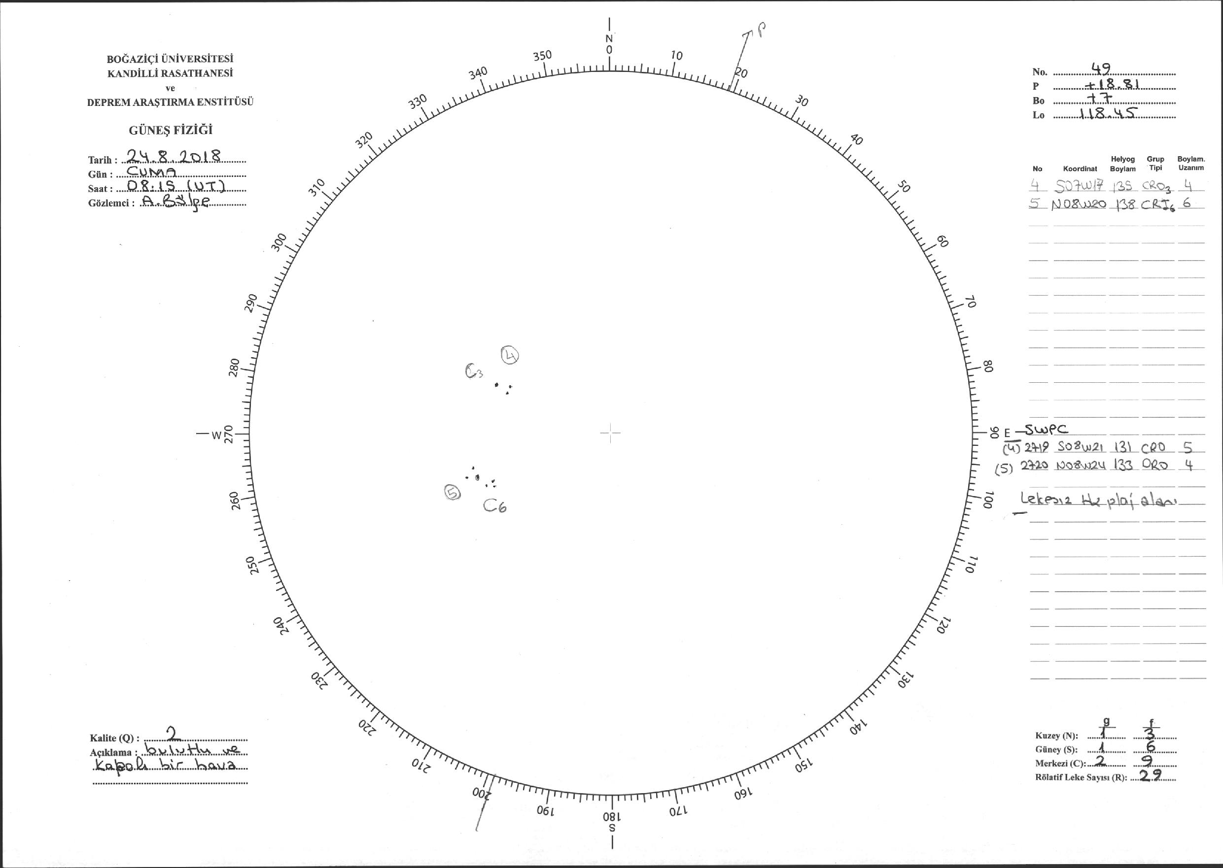 Güneş Lekesi Çizimi - 24.08.2018