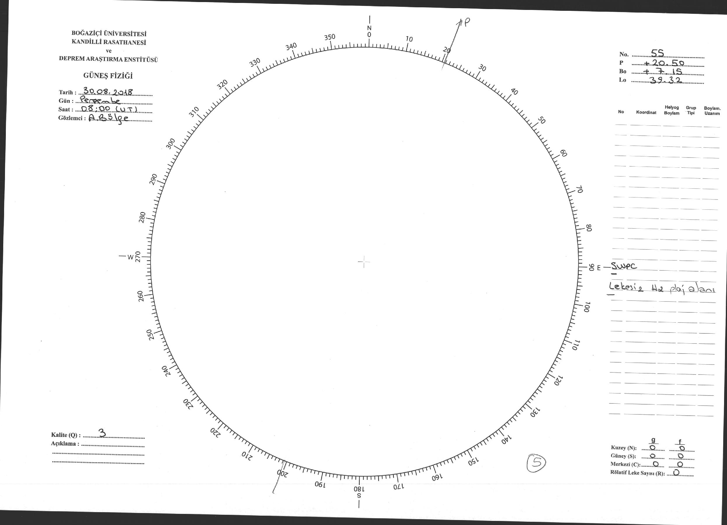 Güneş Lekesi Çizimi - 30.08.2018