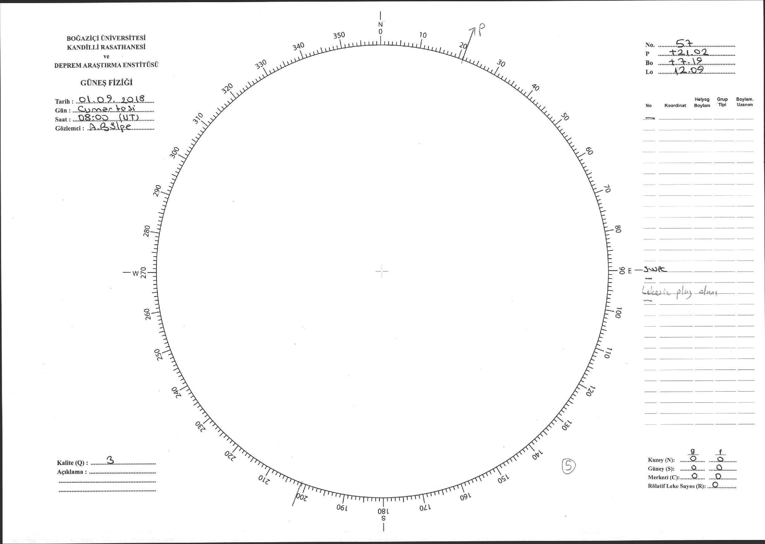 Güneş Lekesi Çizimi - 01.09.2018