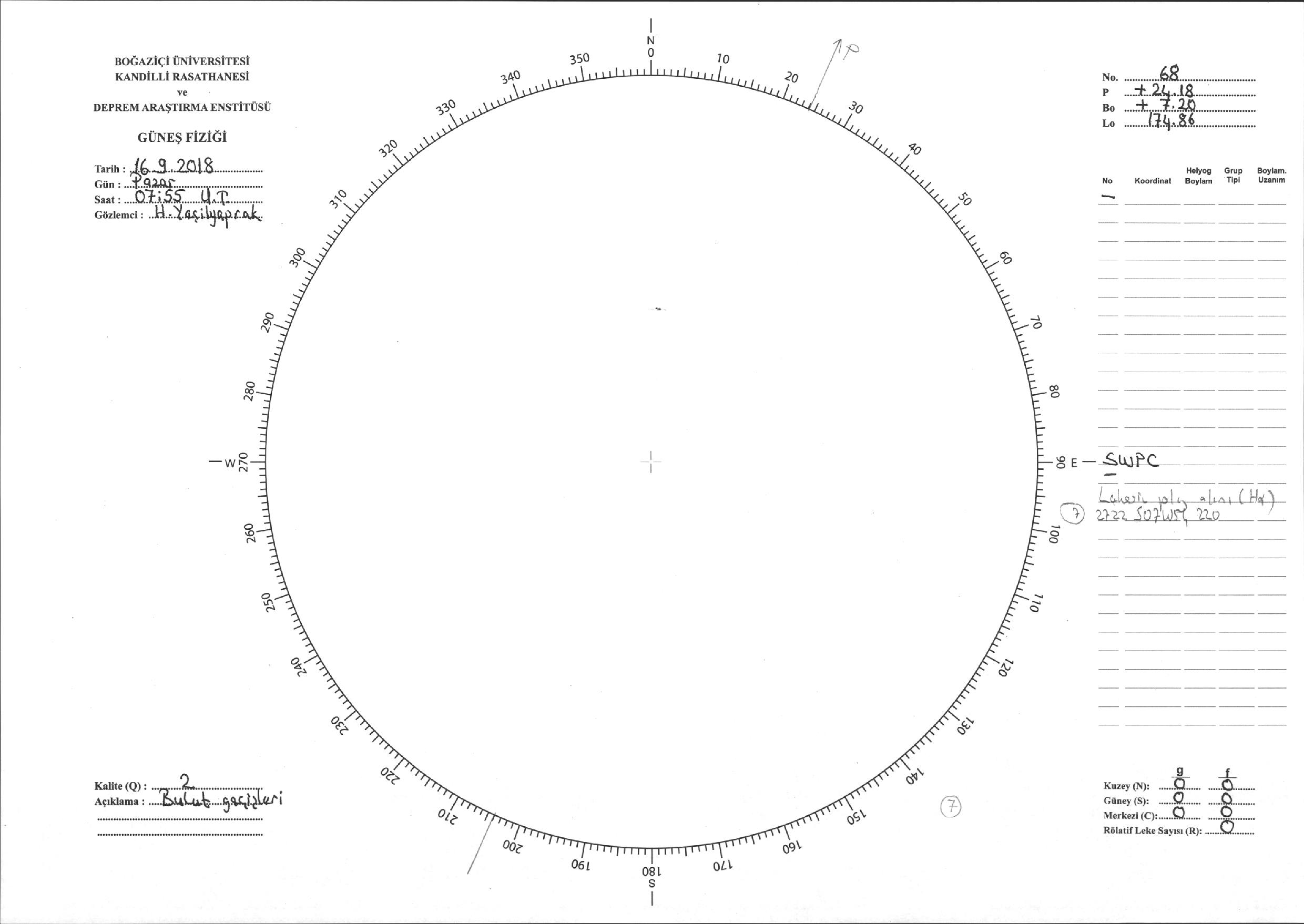 Güneş Lekesi Çizimi - 16.09.2018