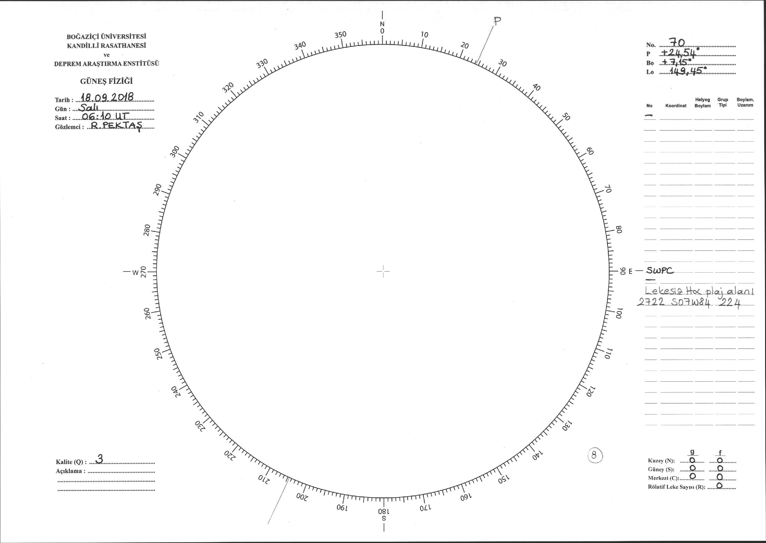 Güneş Lekesi Çizimi - 18.09.2018