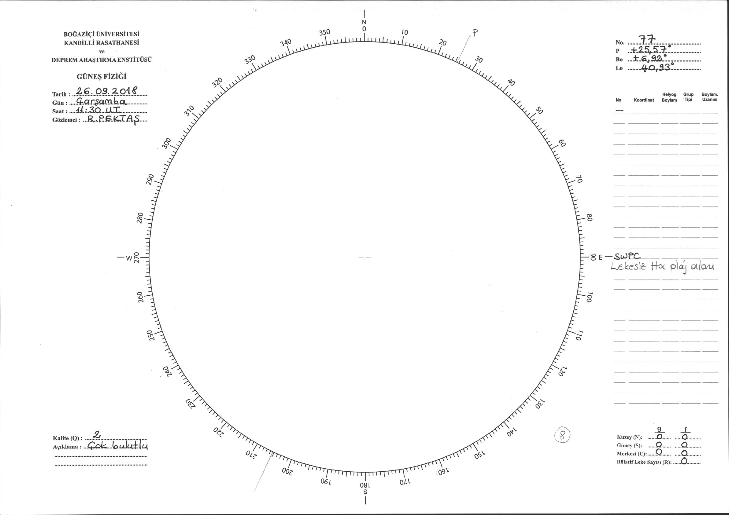 Güneş Lekesi Çizimi - 26.09.2018