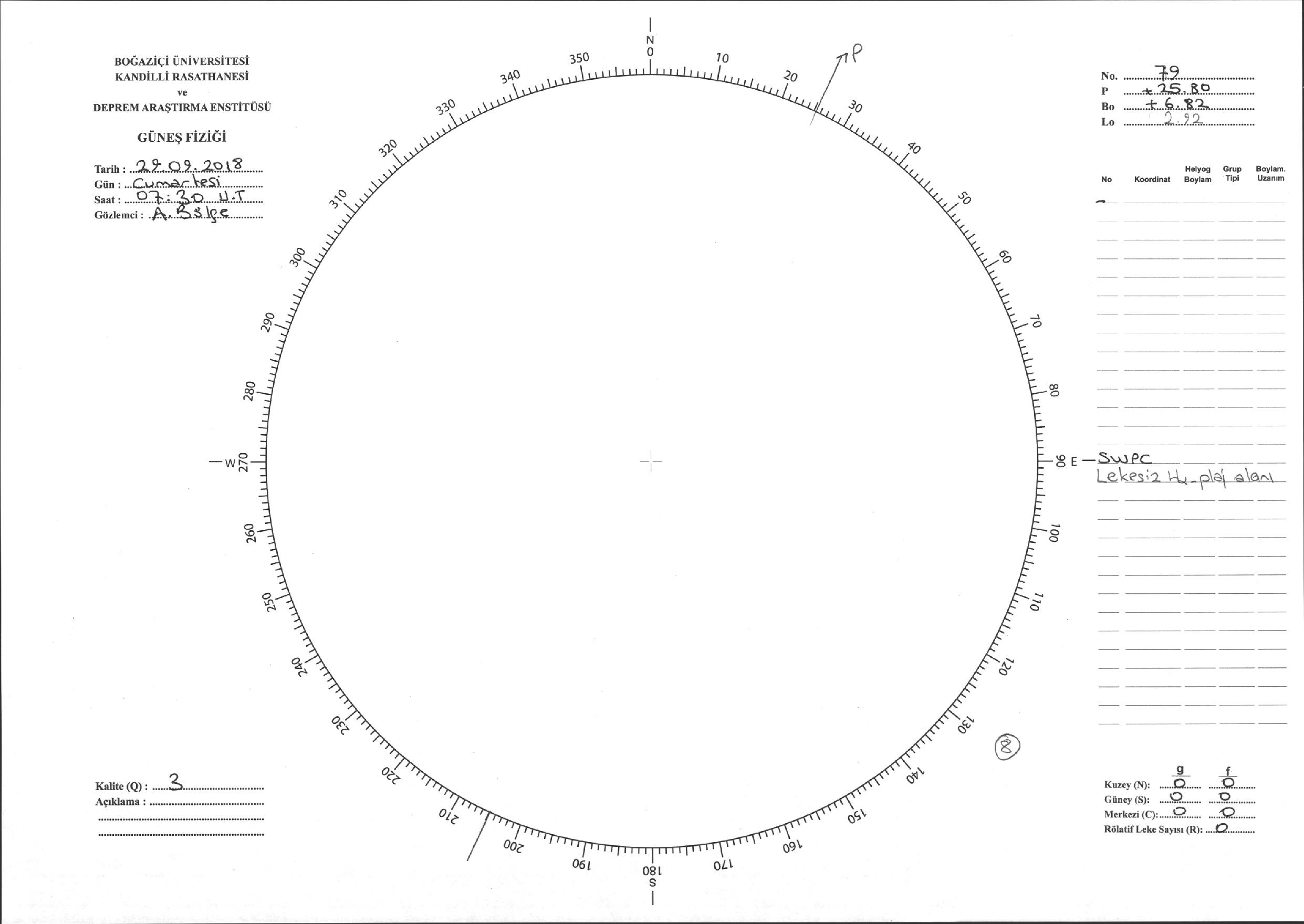 Güneş Lekesi Çizimi - 29.09.2018