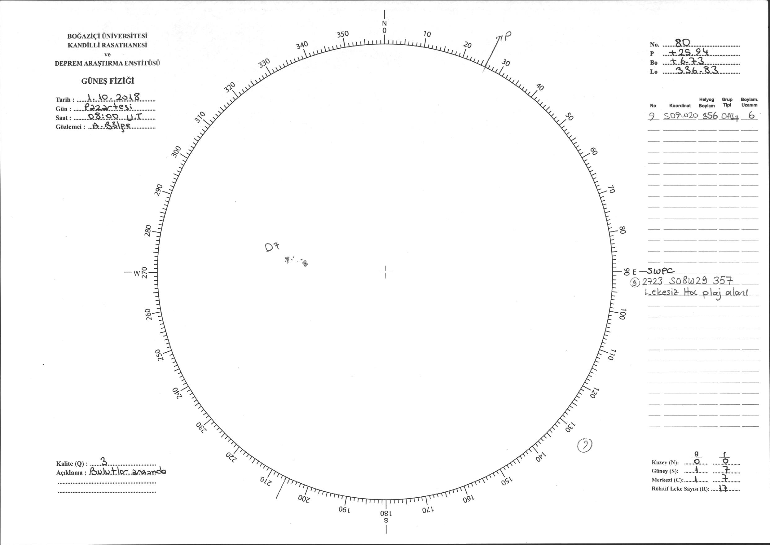 Güneş Lekesi Çizimi - 01.10.2018