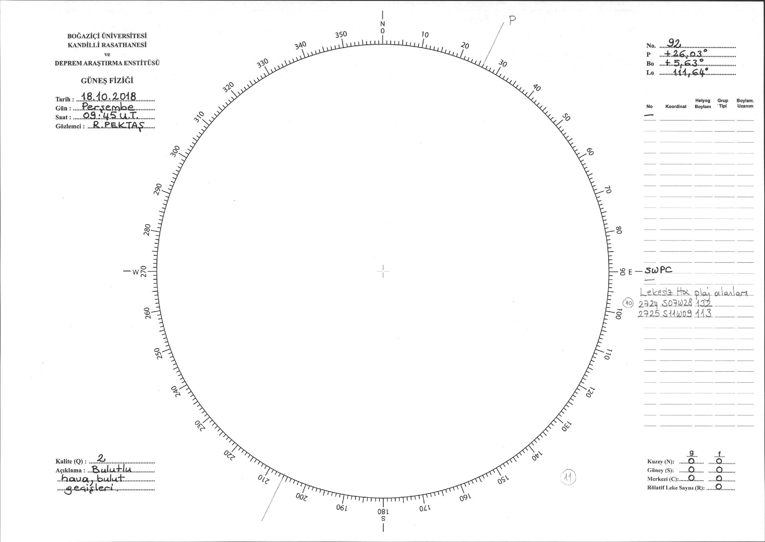 Güneş Lekesi Çizimi - 18.10.2018