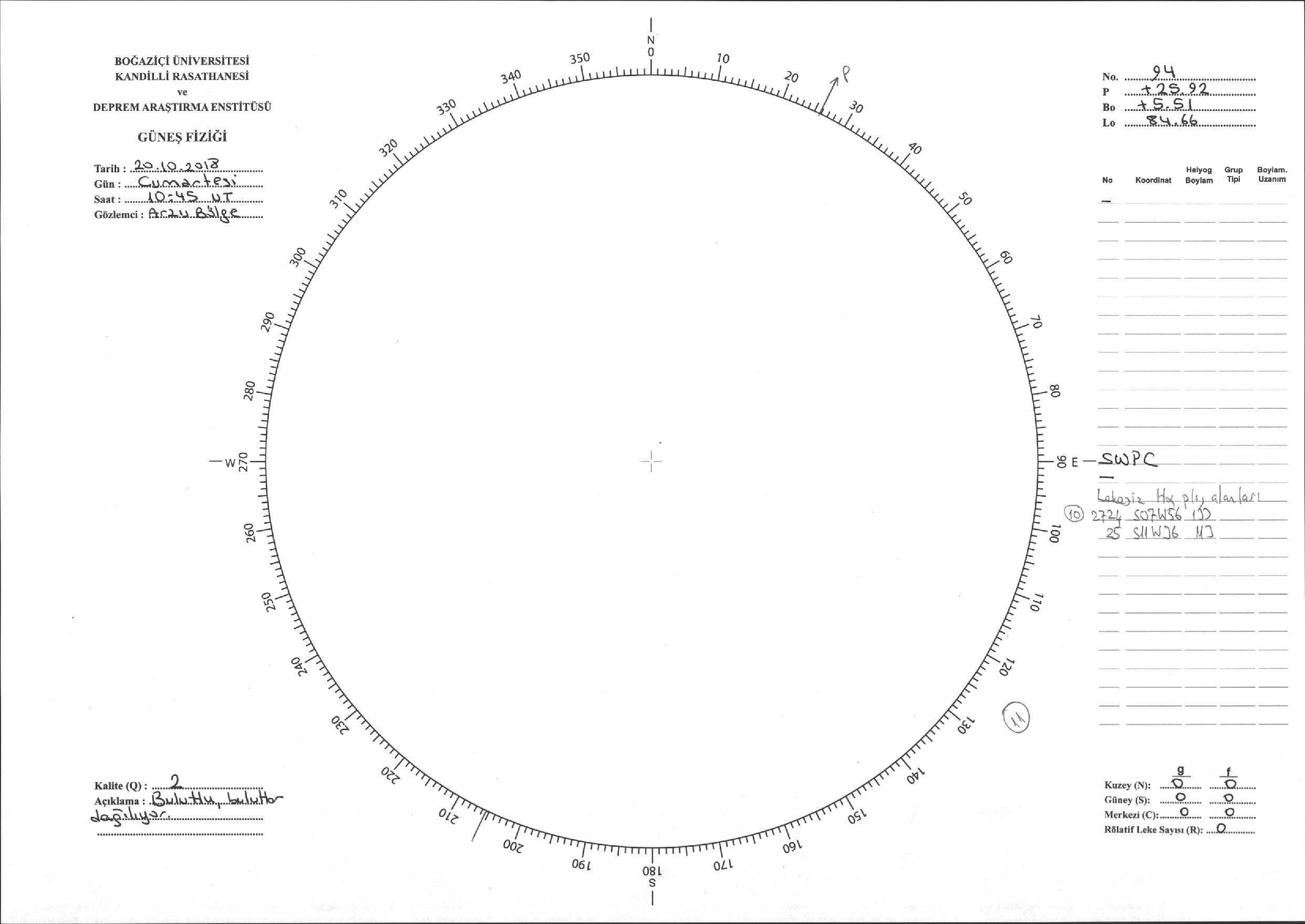 Güneş Lekesi Çizimi - 20.10.2018
