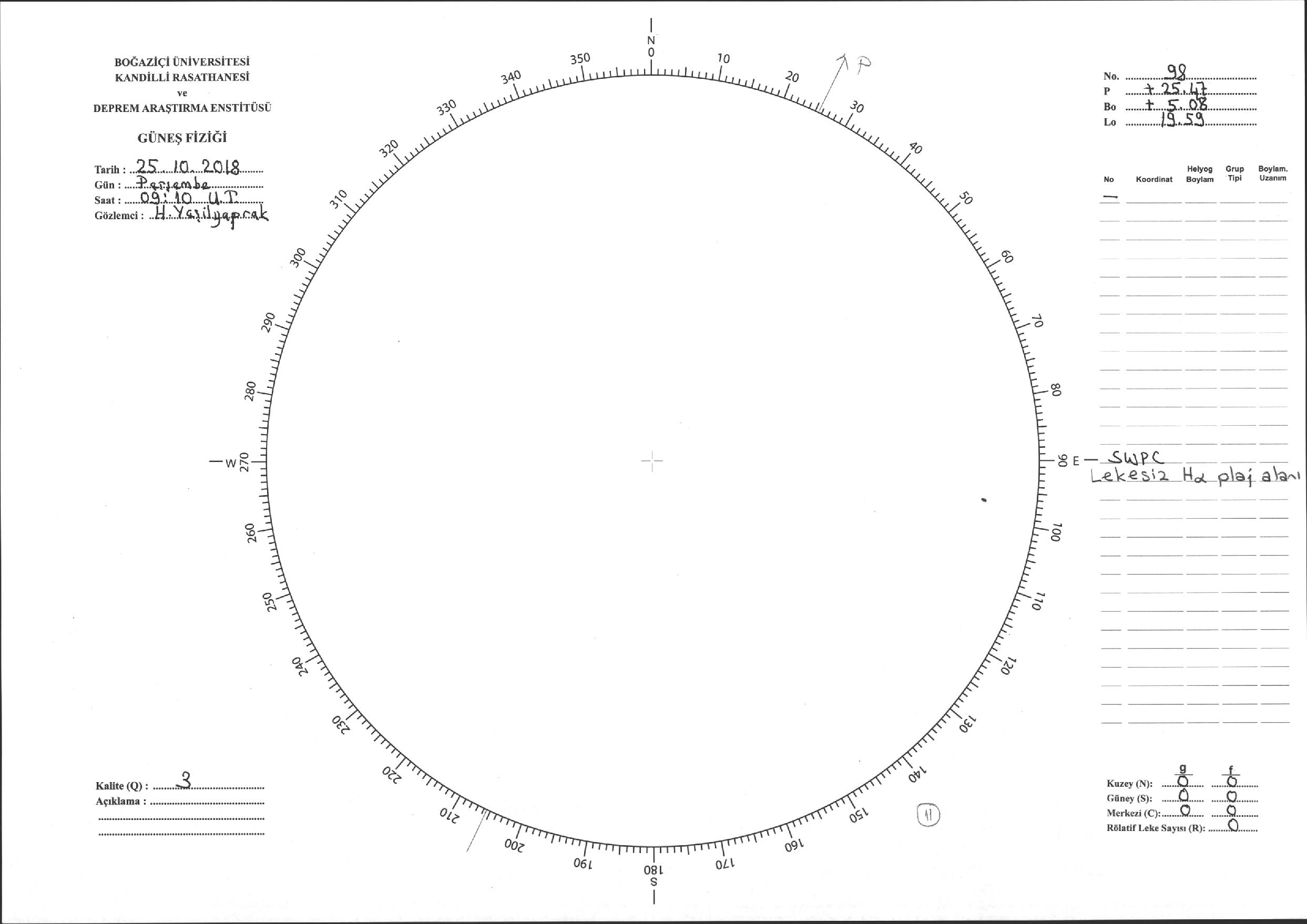 Güneş Lekesi Çizimi - 25.10.2018