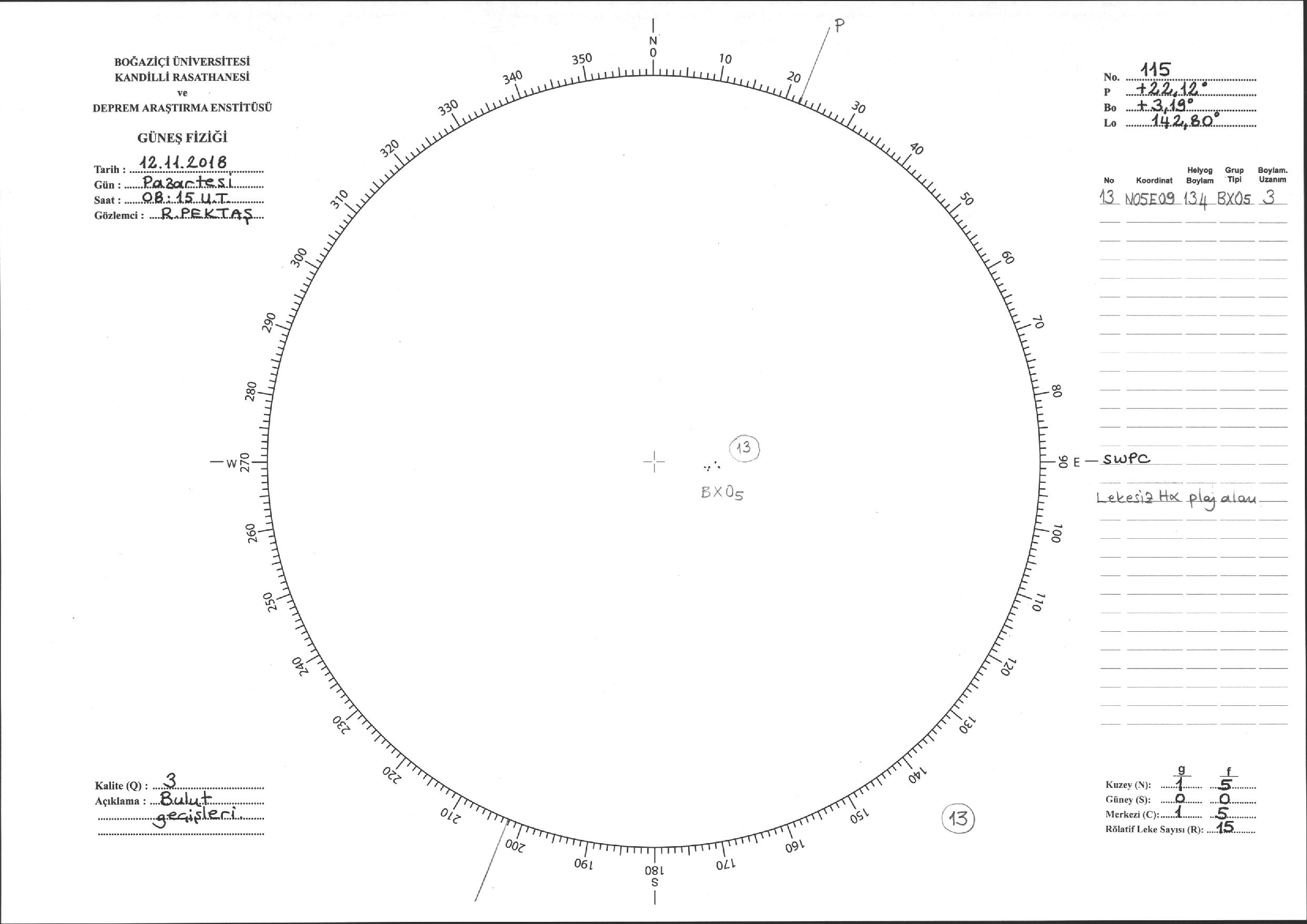 Güneş Lekesi Çizimi - 12.11.2018
