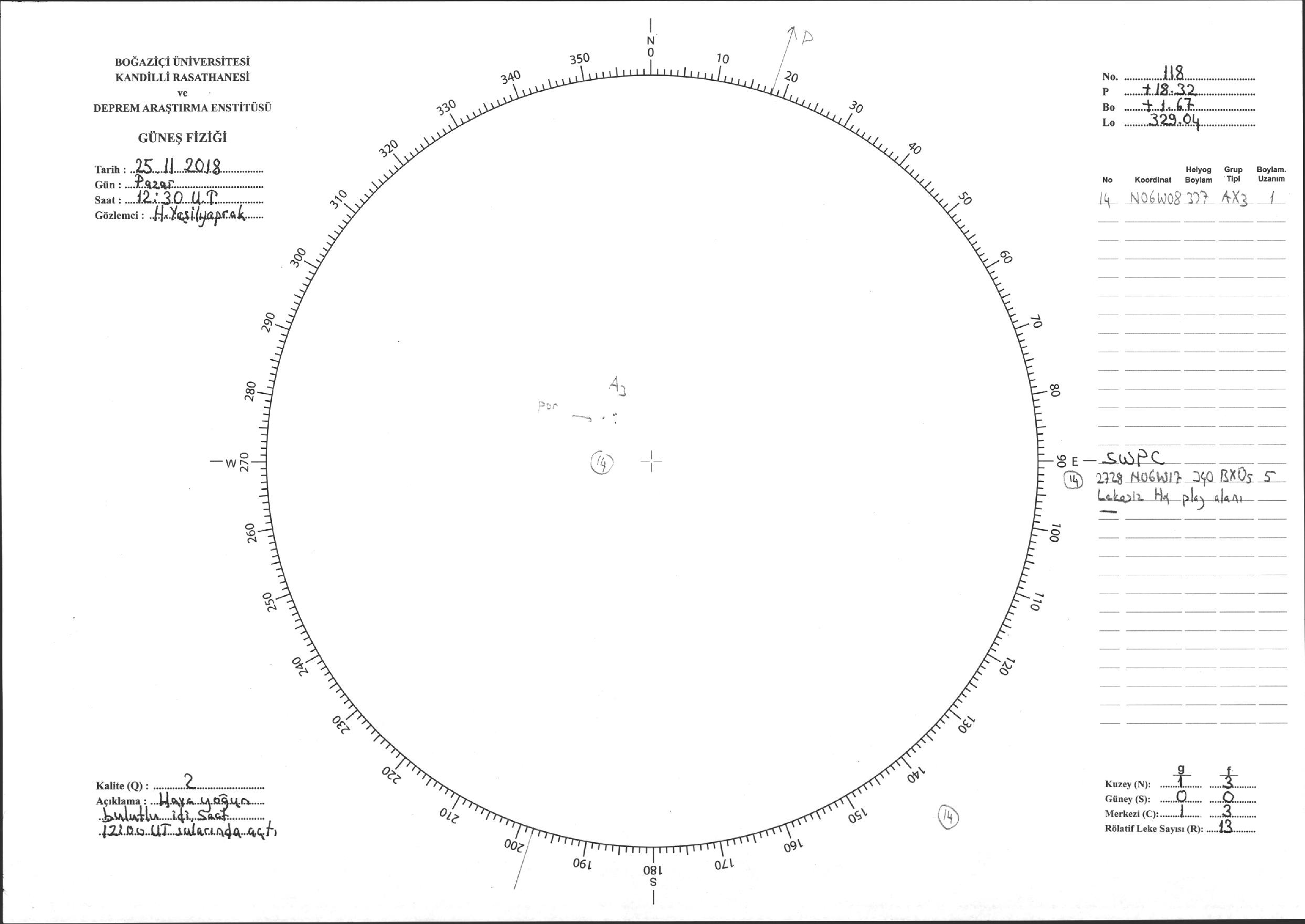 Güneş Lekesi Çizimi - 25.11.2018