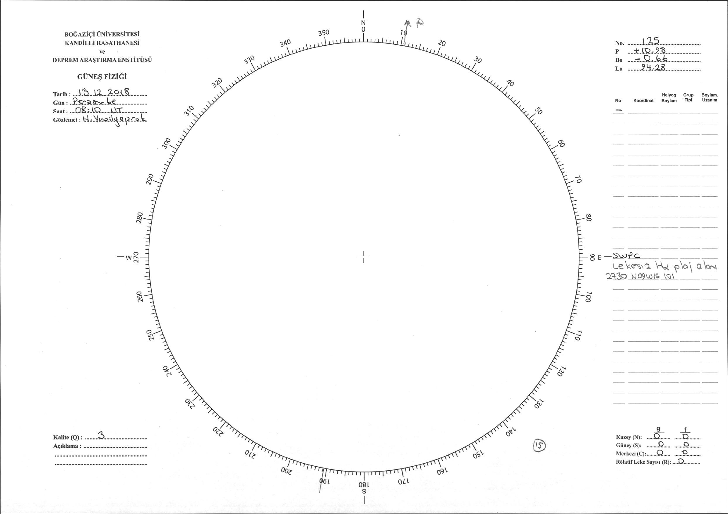 Güneş Lekesi Çizimi - 13.12.2018