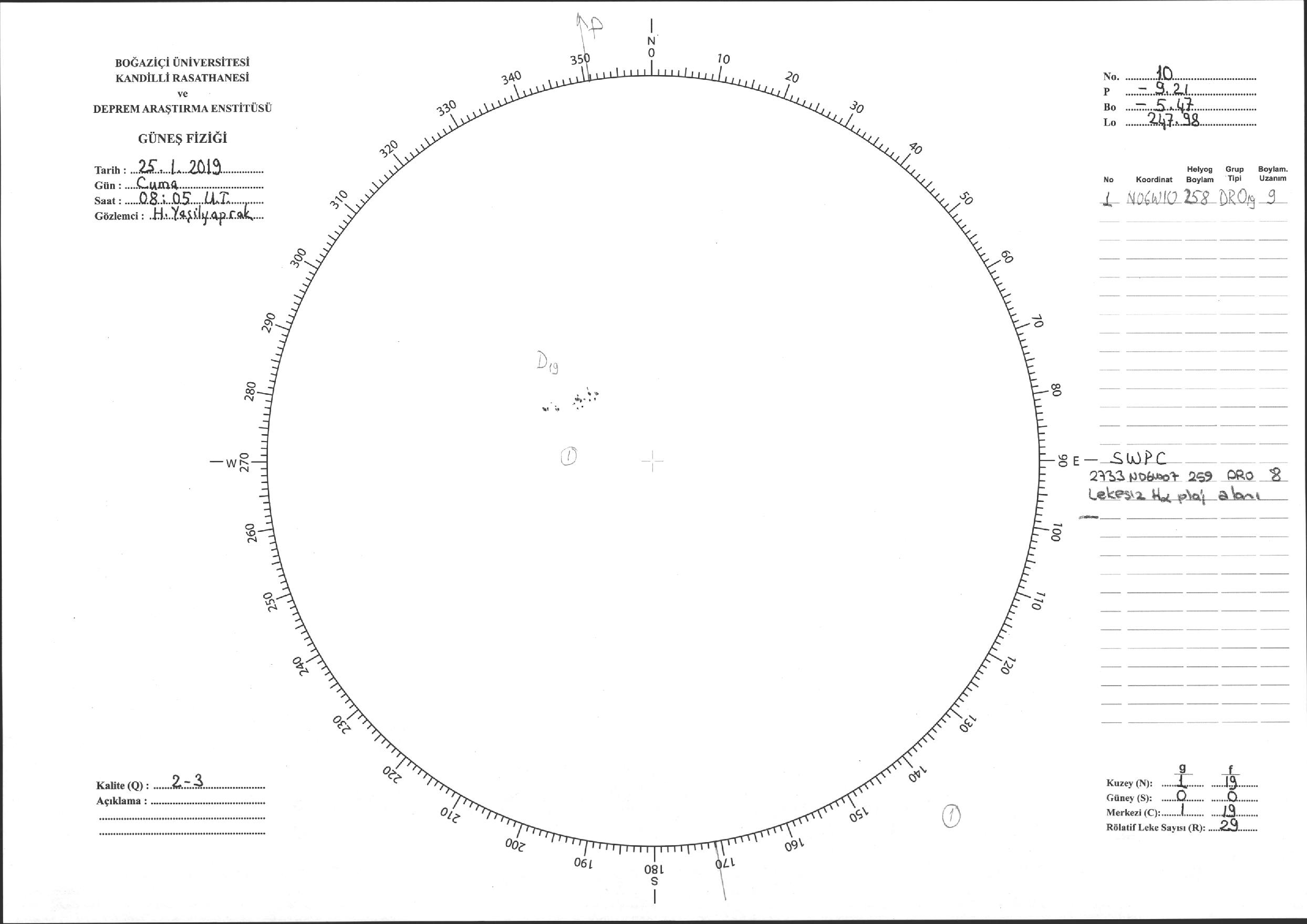 Güneş Lekesi Çizimi - 25.01.2019
