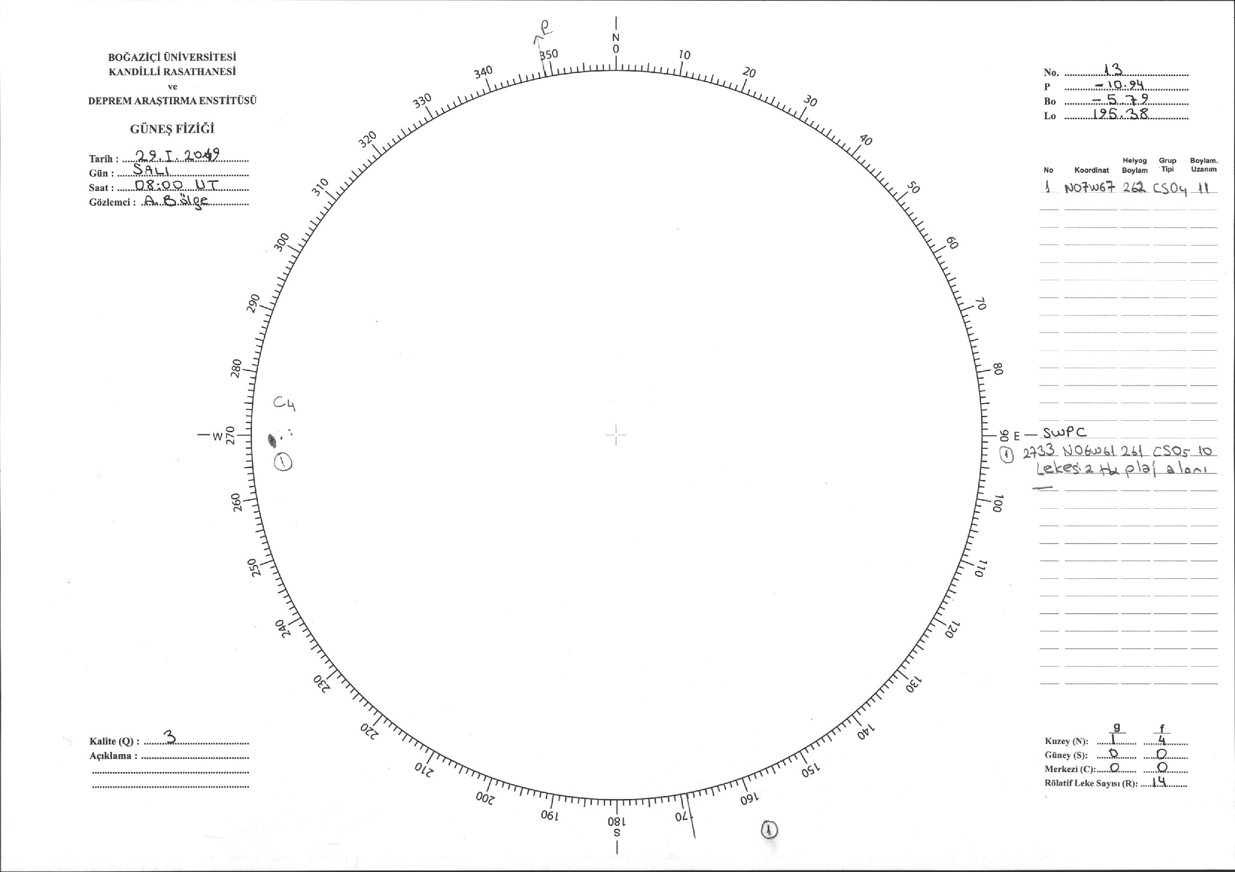 Güneş Lekesi Çizimi - 29.01.2019