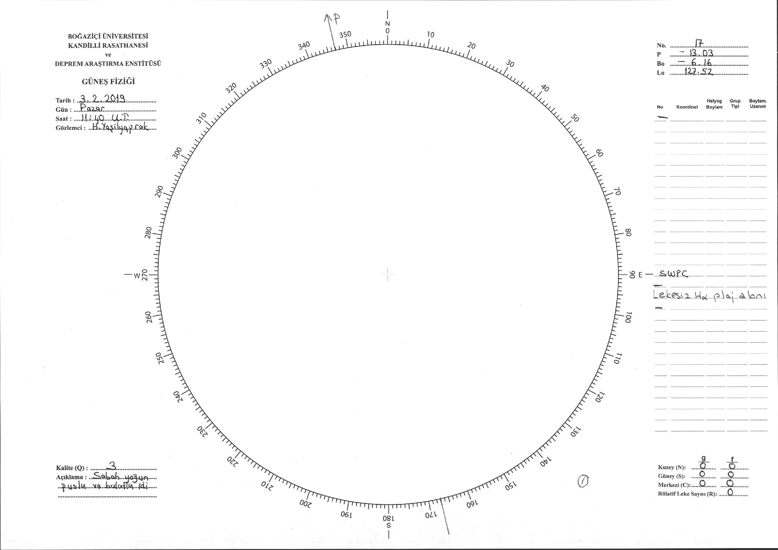 Güneş Lekesi Çizimi - 03.02.2019