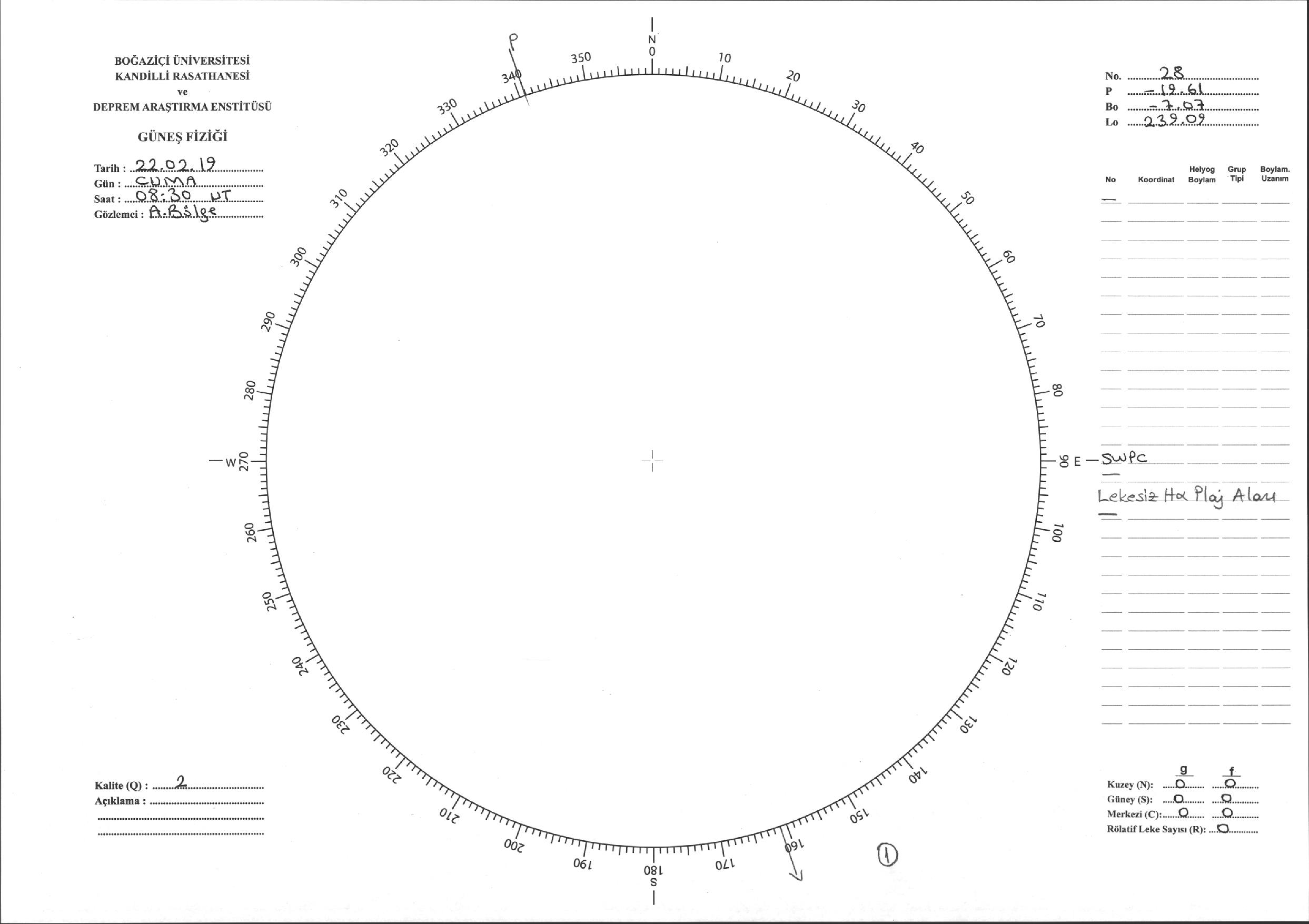 Güneş Lekesi Çizimi - 22.02.2019
