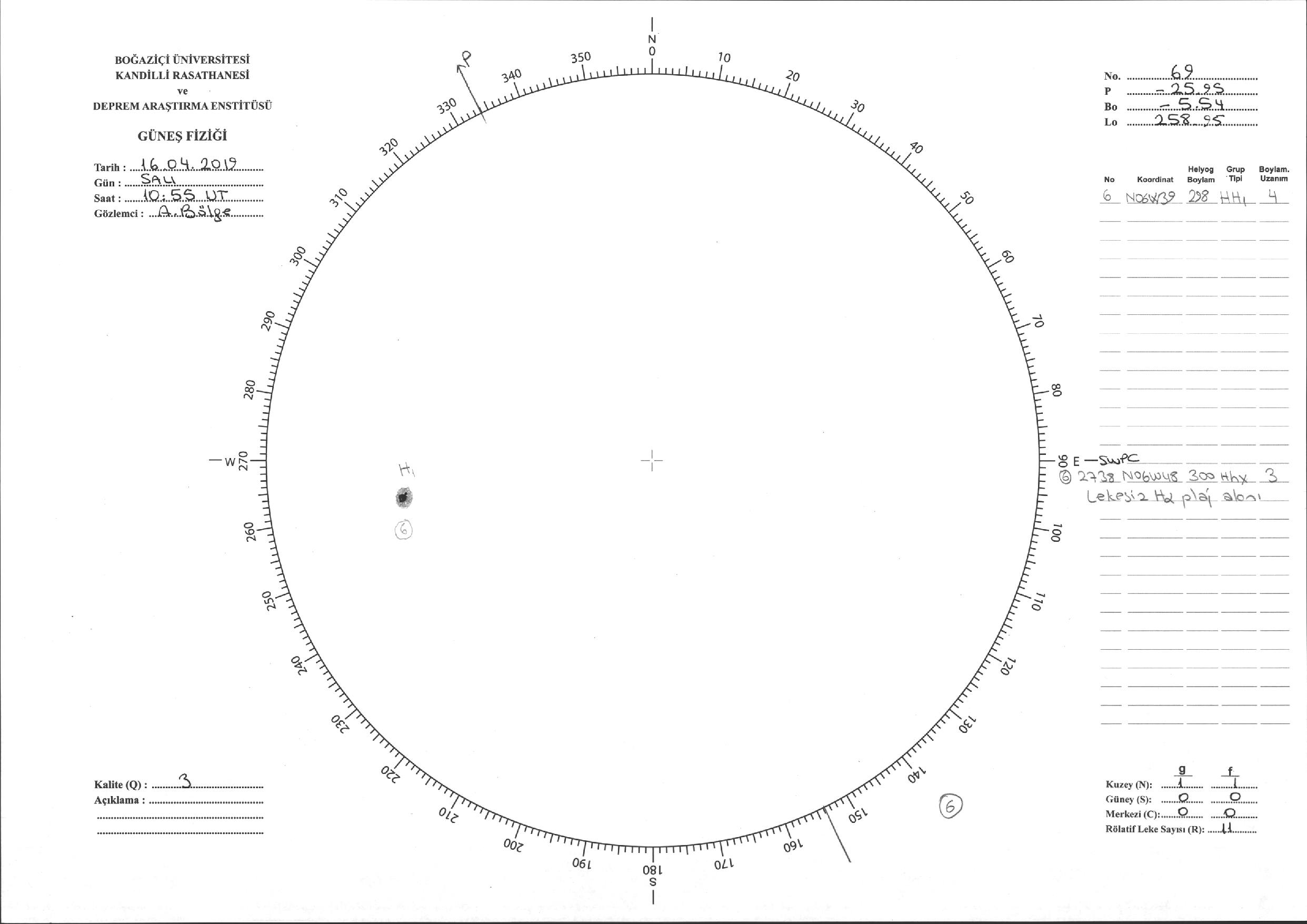 Güneş Lekesi Çizimi - 16.04.2019