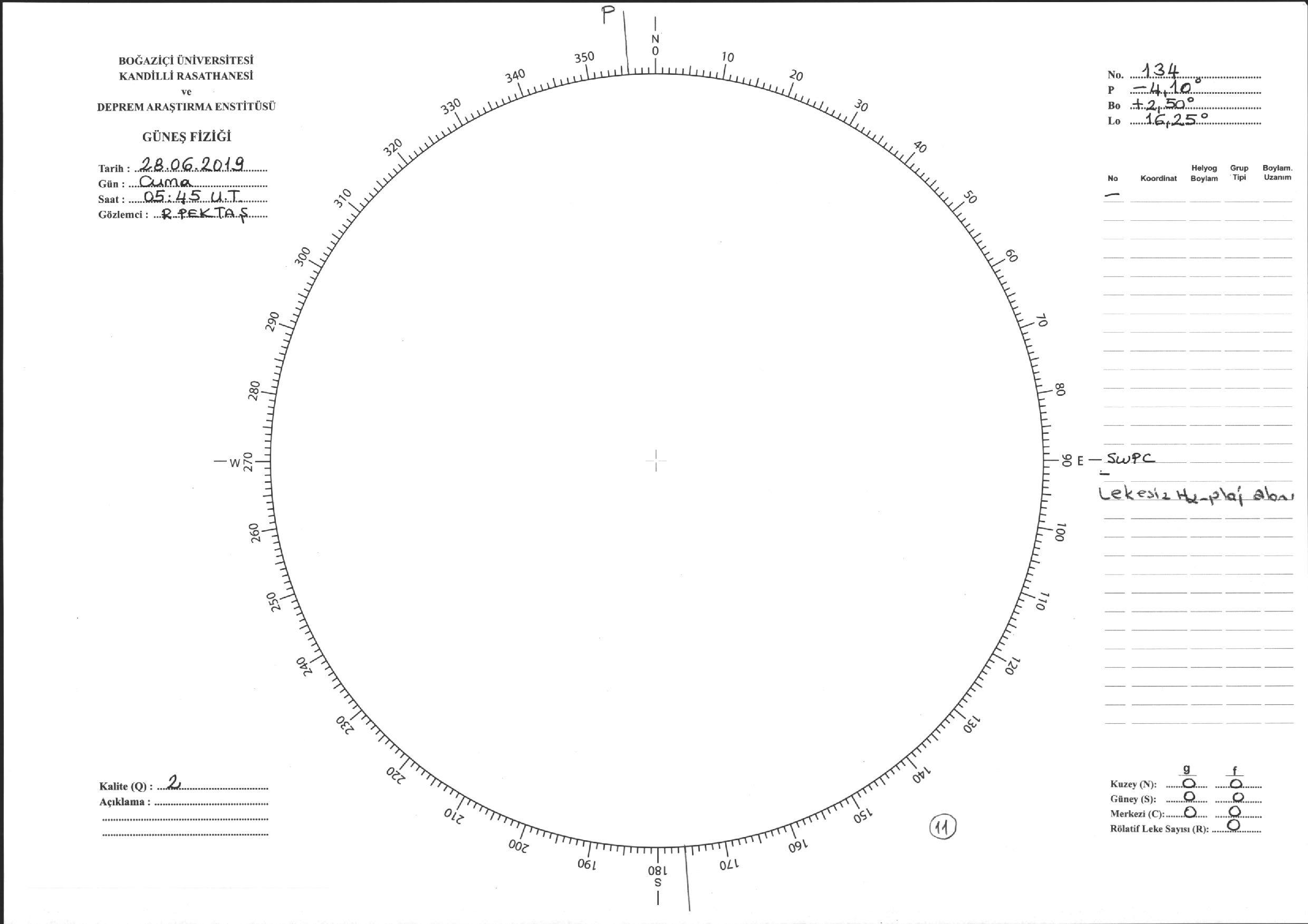 Güneş Lekesi Çizimi - 28.06.2019