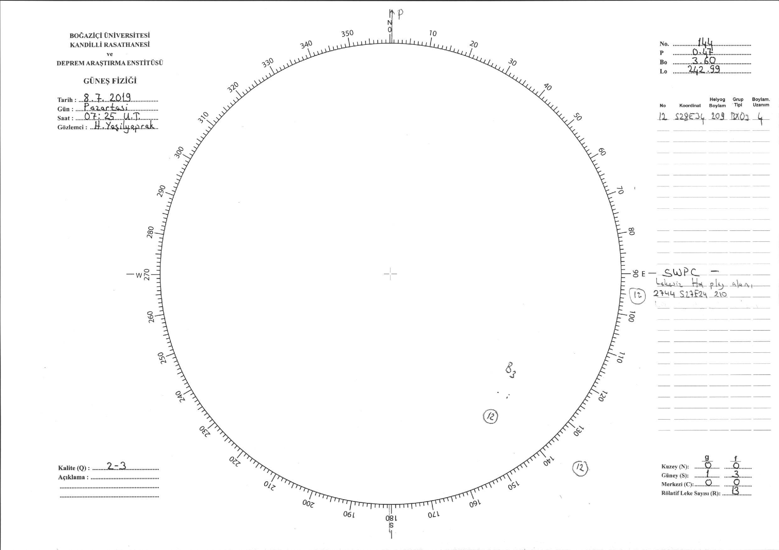 Güneş Lekesi Çizimi - 08.07.2019