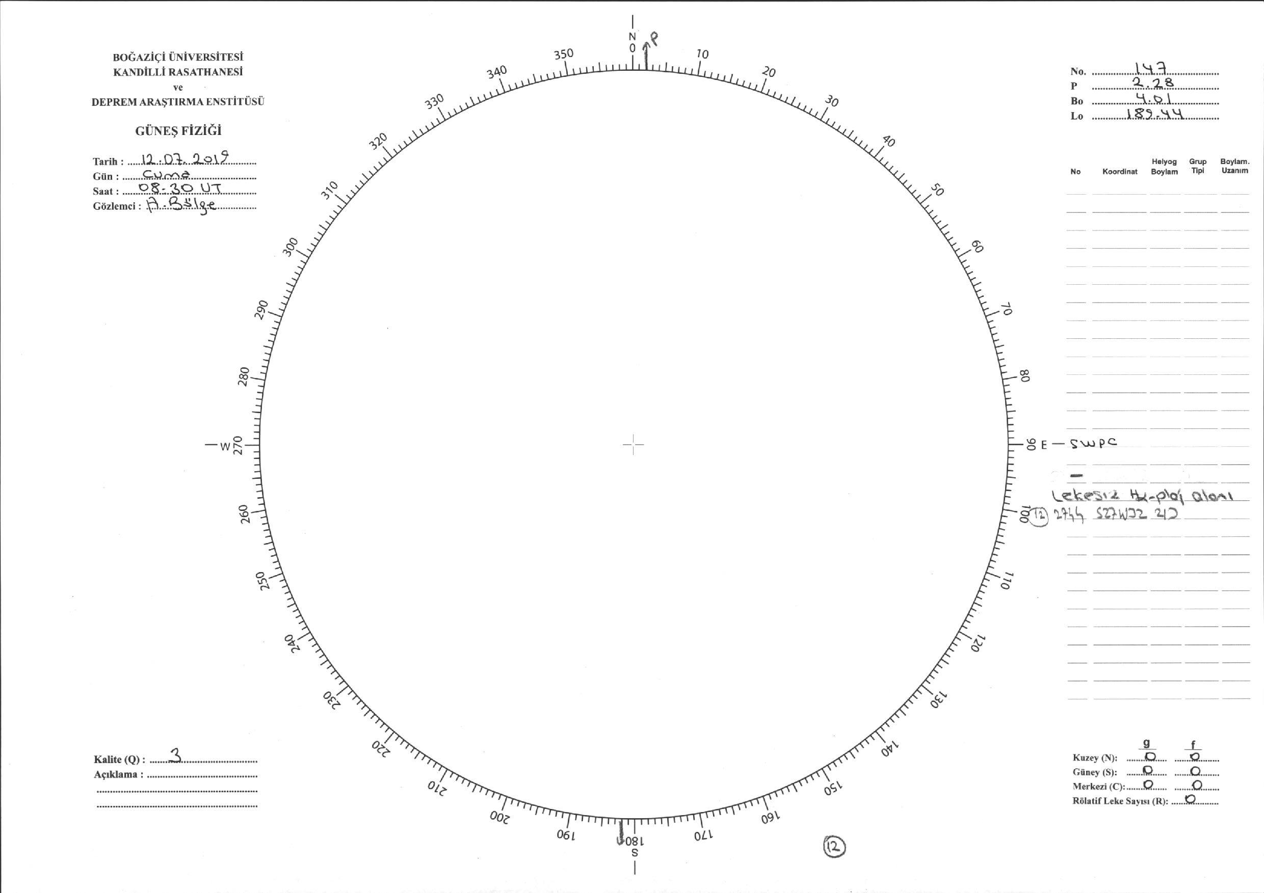 Güneş Lekesi Çizimi - 12.07.2019