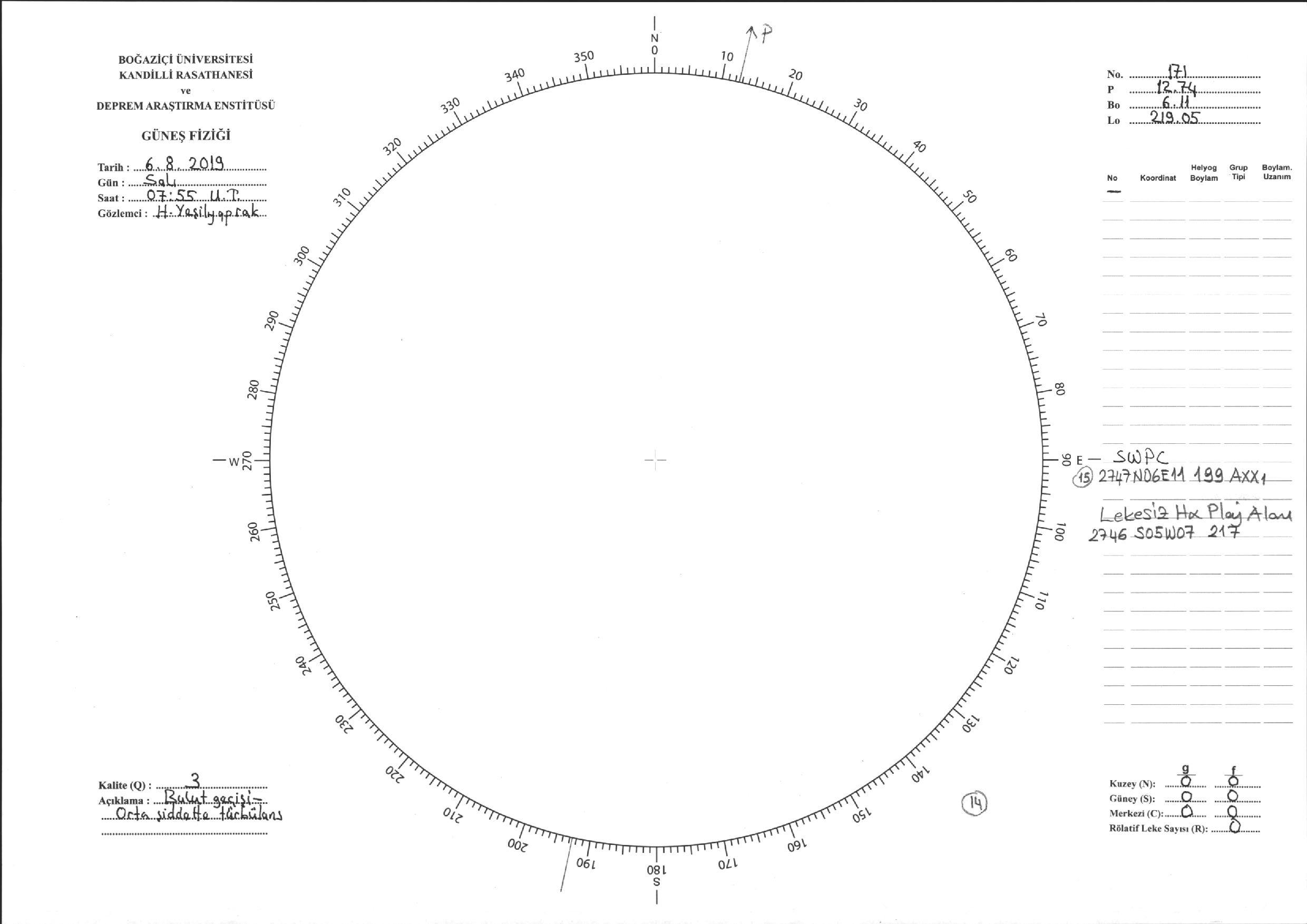 Güneş Lekesi Çizimi - 06.08.2019