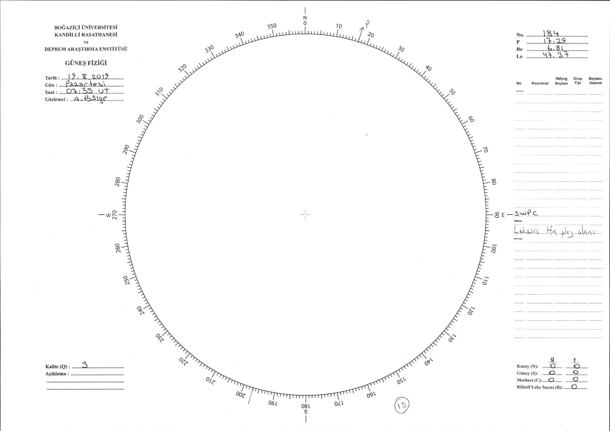 Güneş Lekesi Çizimi - 19.08.2019