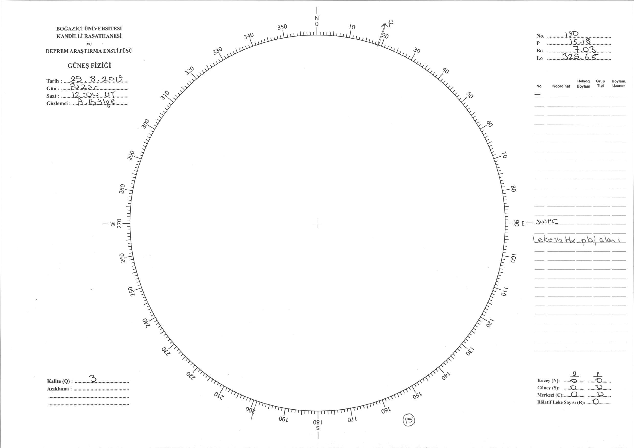 Güneş Lekesi Çizimi - 25.08.2019
