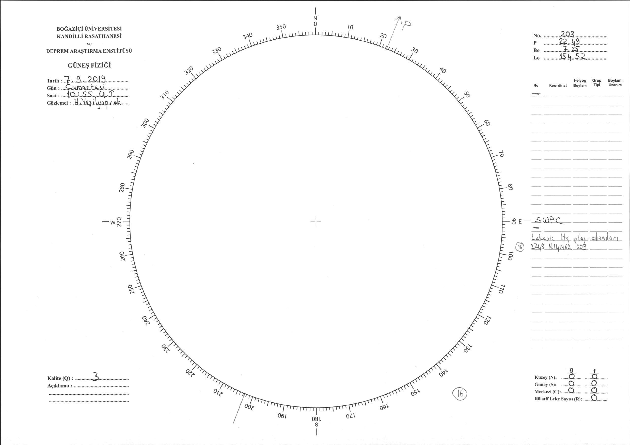 Güneş Lekesi Çizimi - 07.09.2019