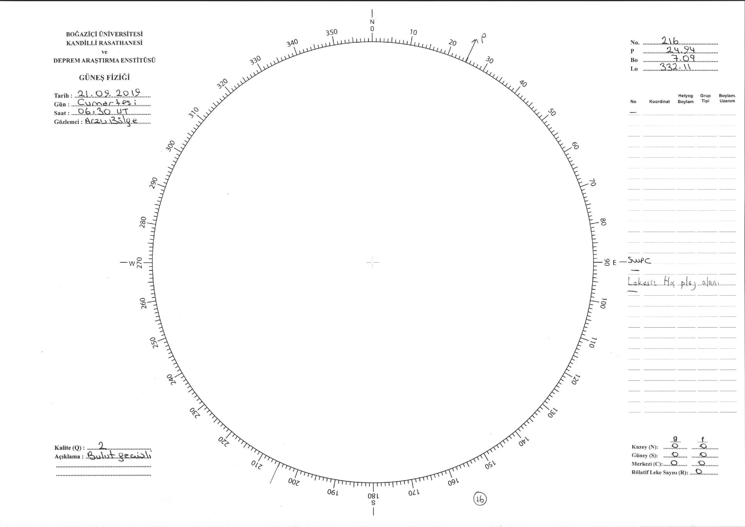 Güneş Lekesi Çizimi - 21.09.2019