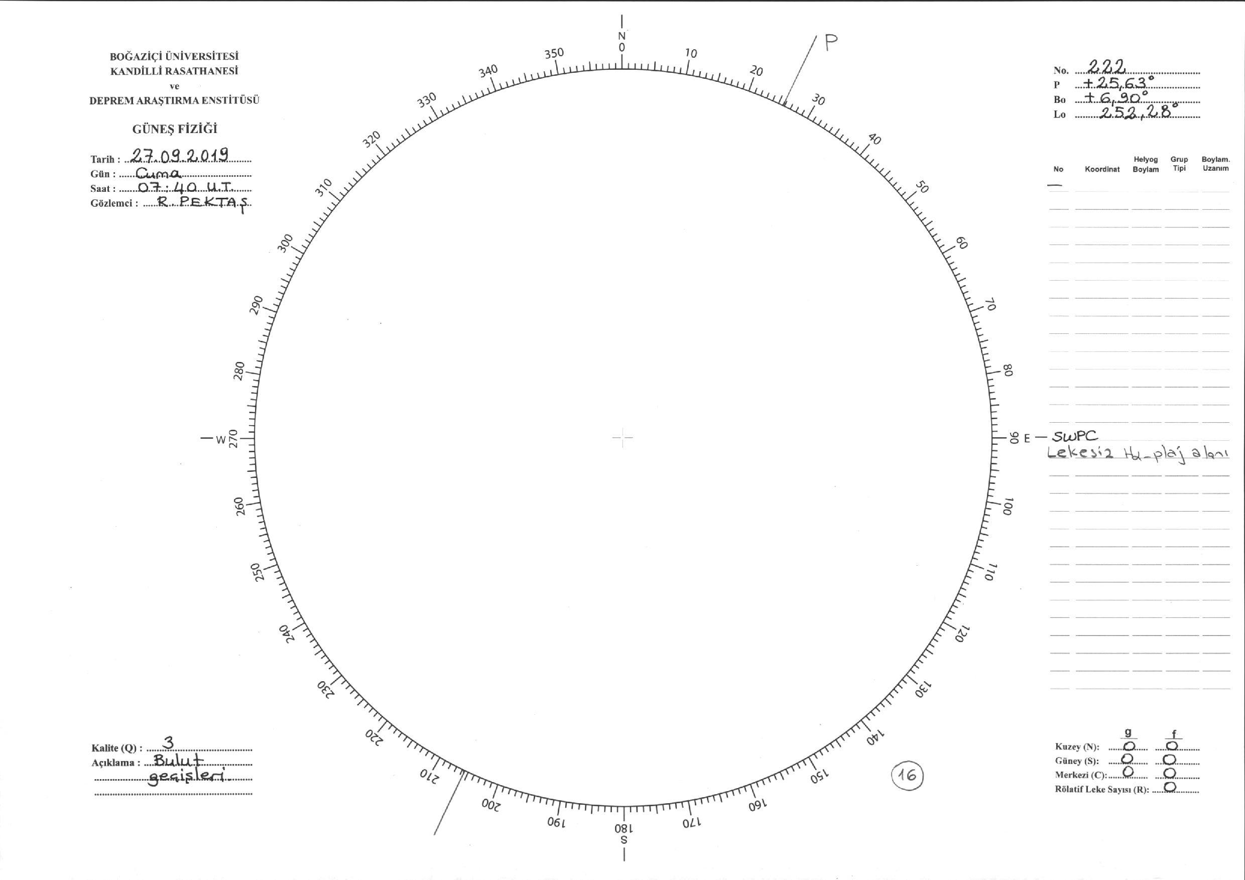 Güneş Lekesi Çizimi - 27.09.2019