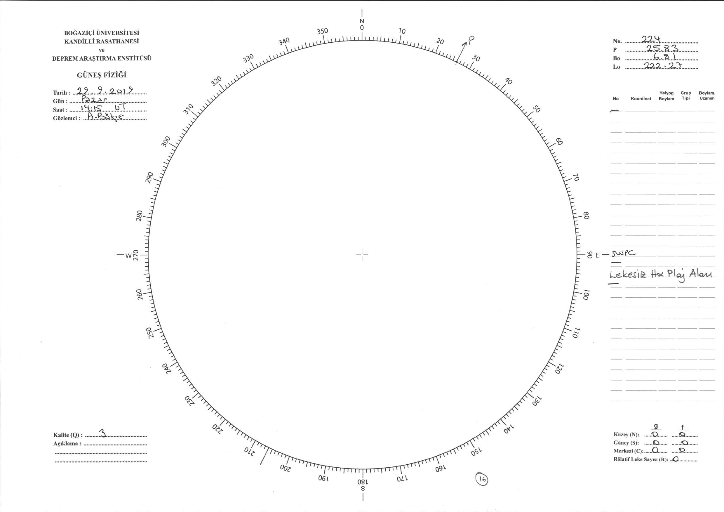 Güneş Lekesi Çizimi - 29.09.2019