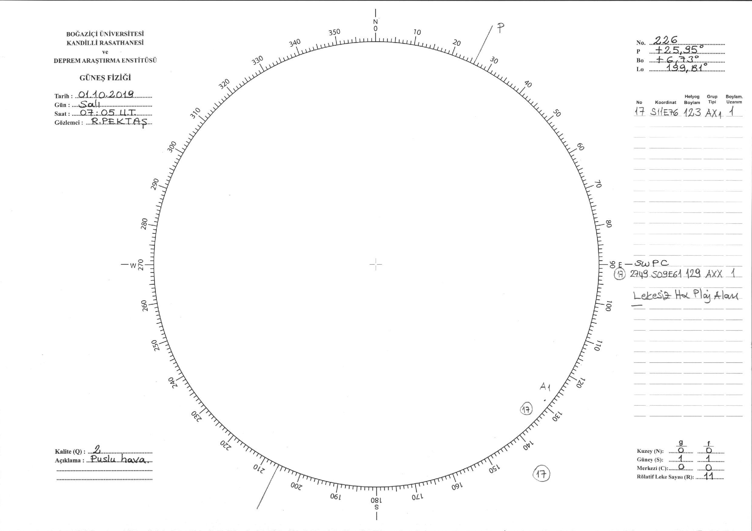 Güneş Lekesi Çizimi - 01.10.2019