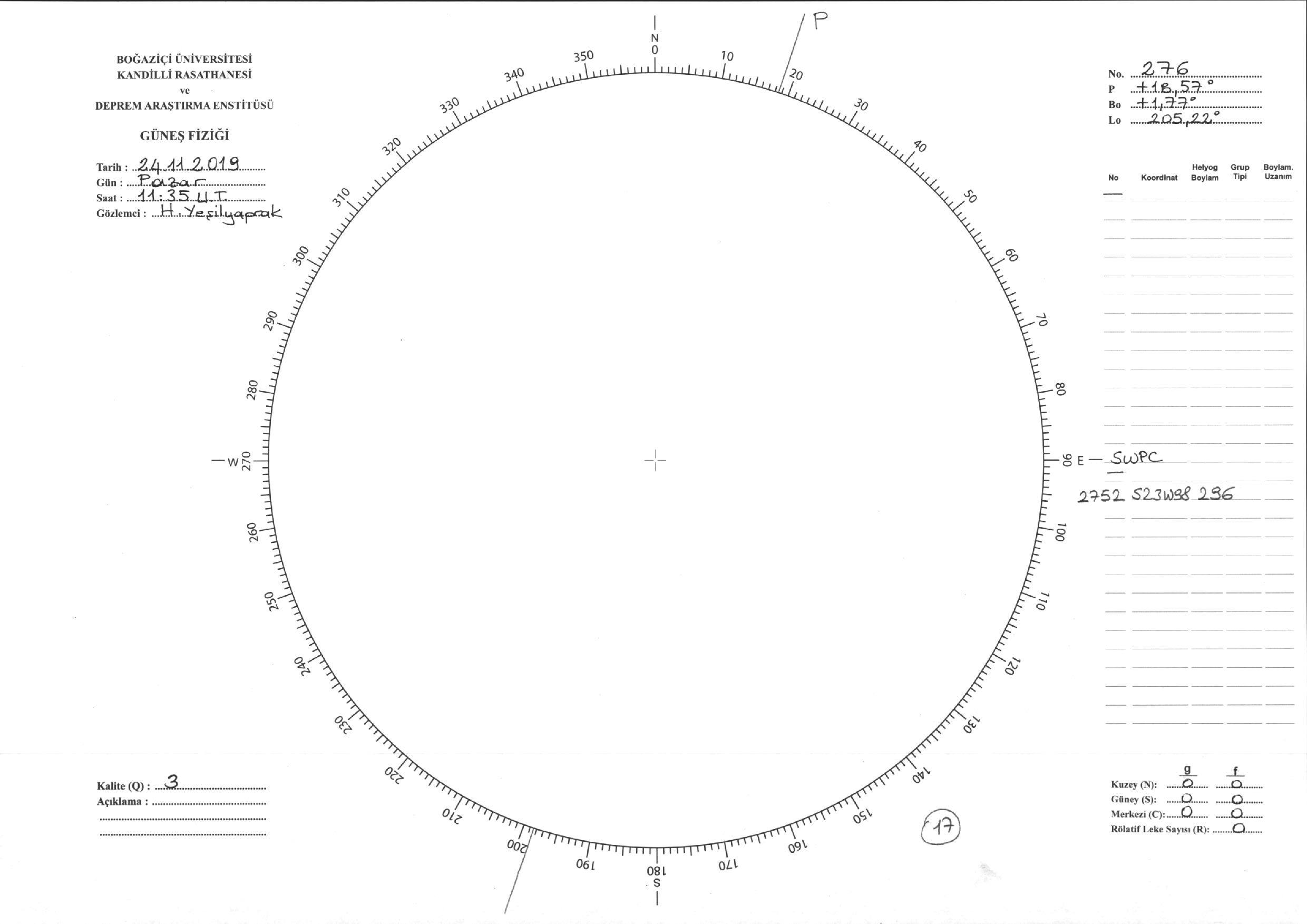 Güneş Lekesi Çizimi - 24.11.2019
