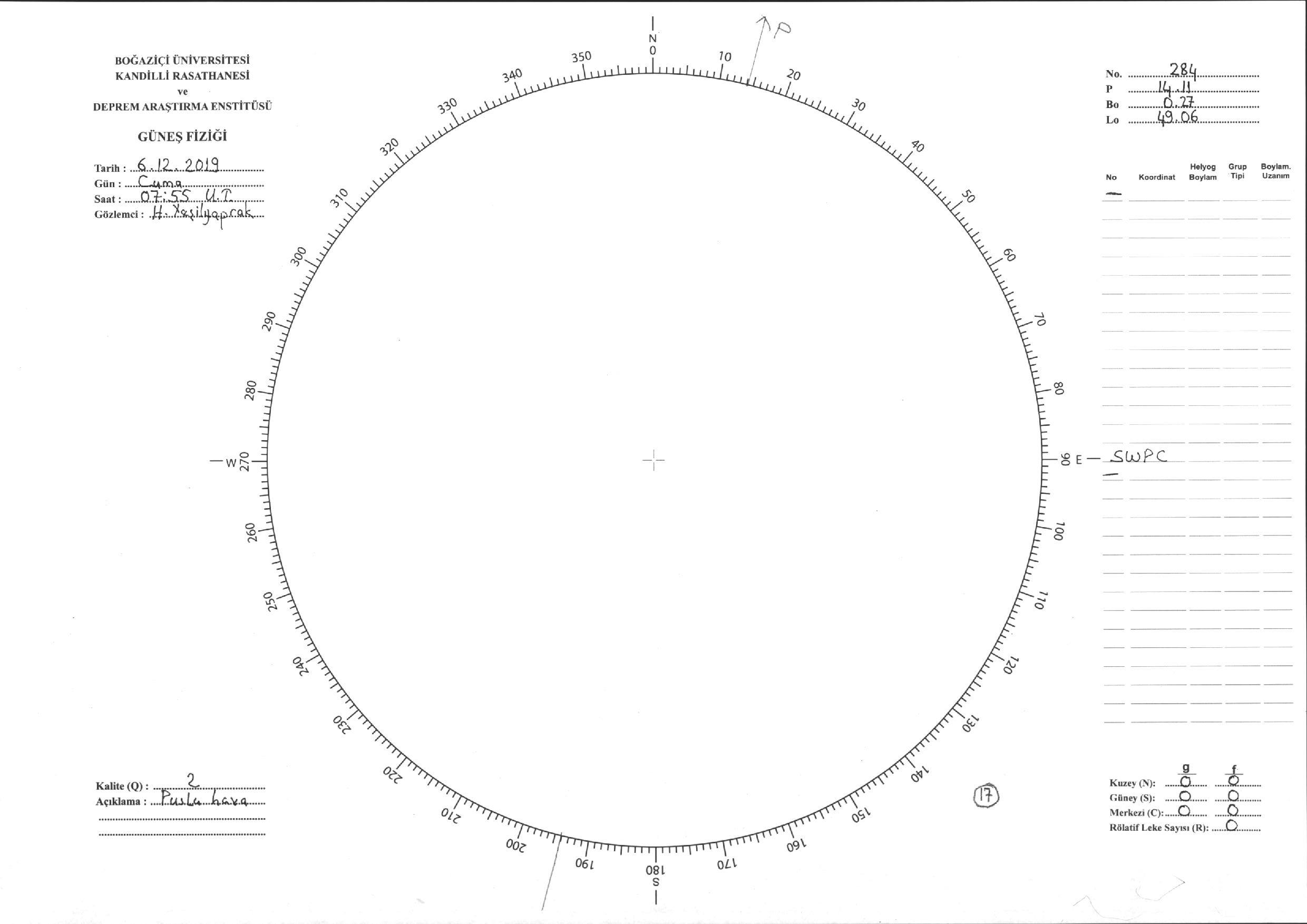Güneş Lekesi Çizimi - 06.12.2019