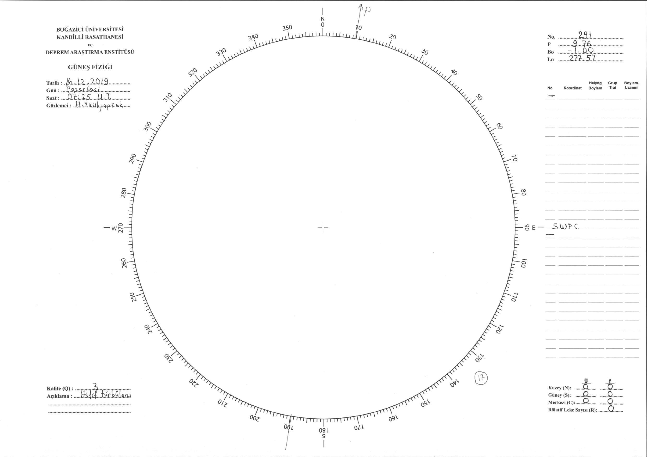 Güneş Lekesi Çizimi - 16.12.2019