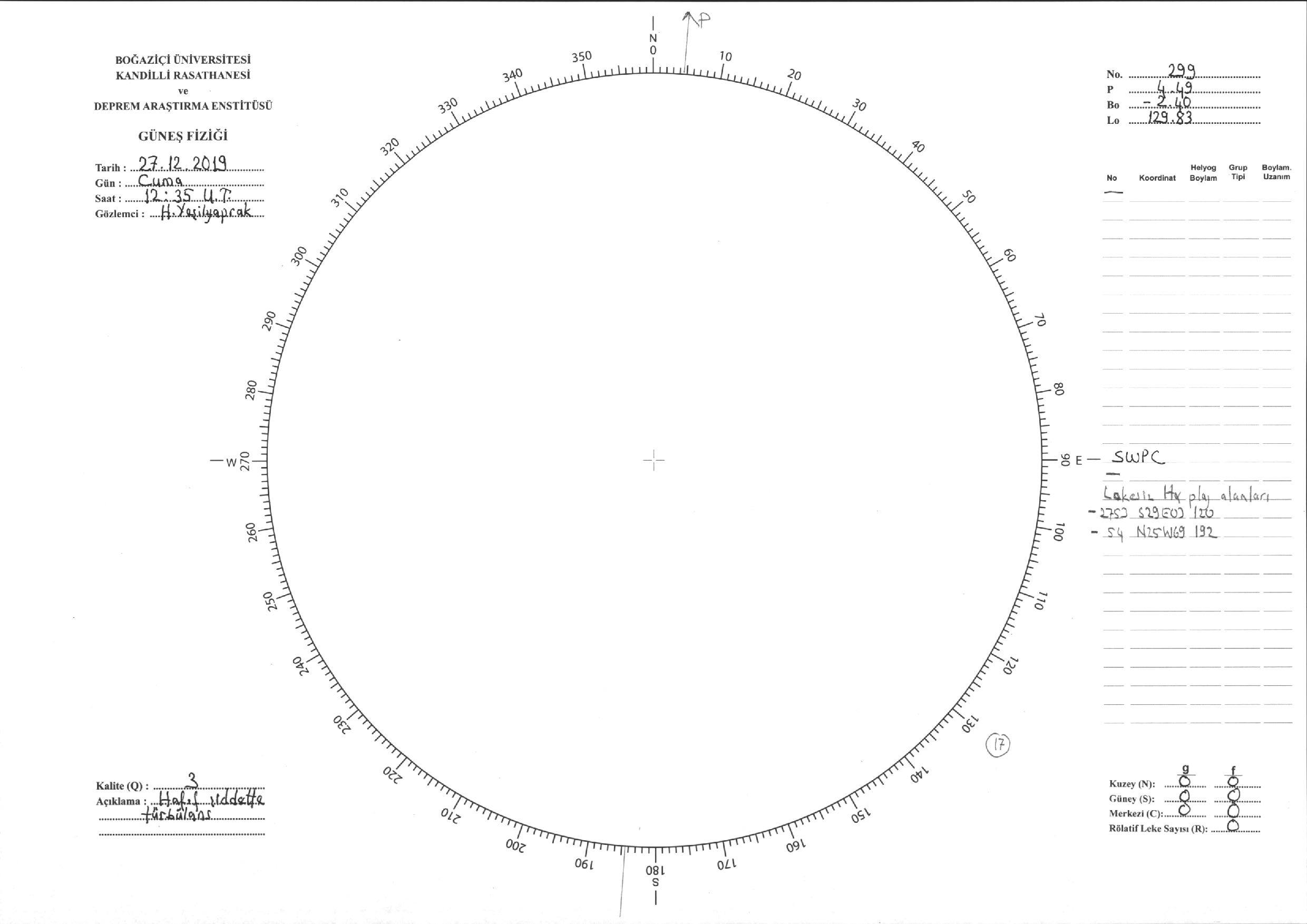 Güneş Lekesi Çizimi - 27.12.2019