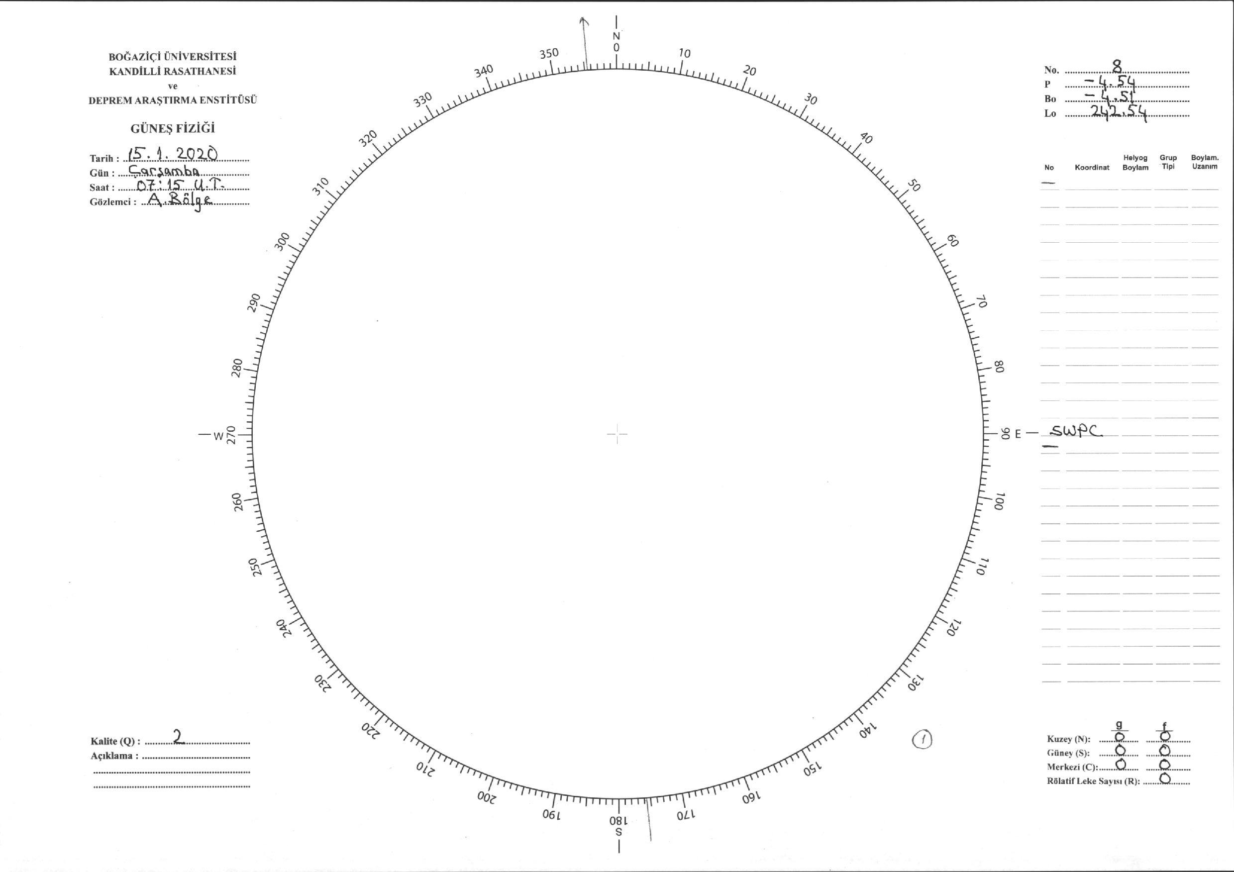 Güneş Lekesi Çizimi - 15.01.2020
