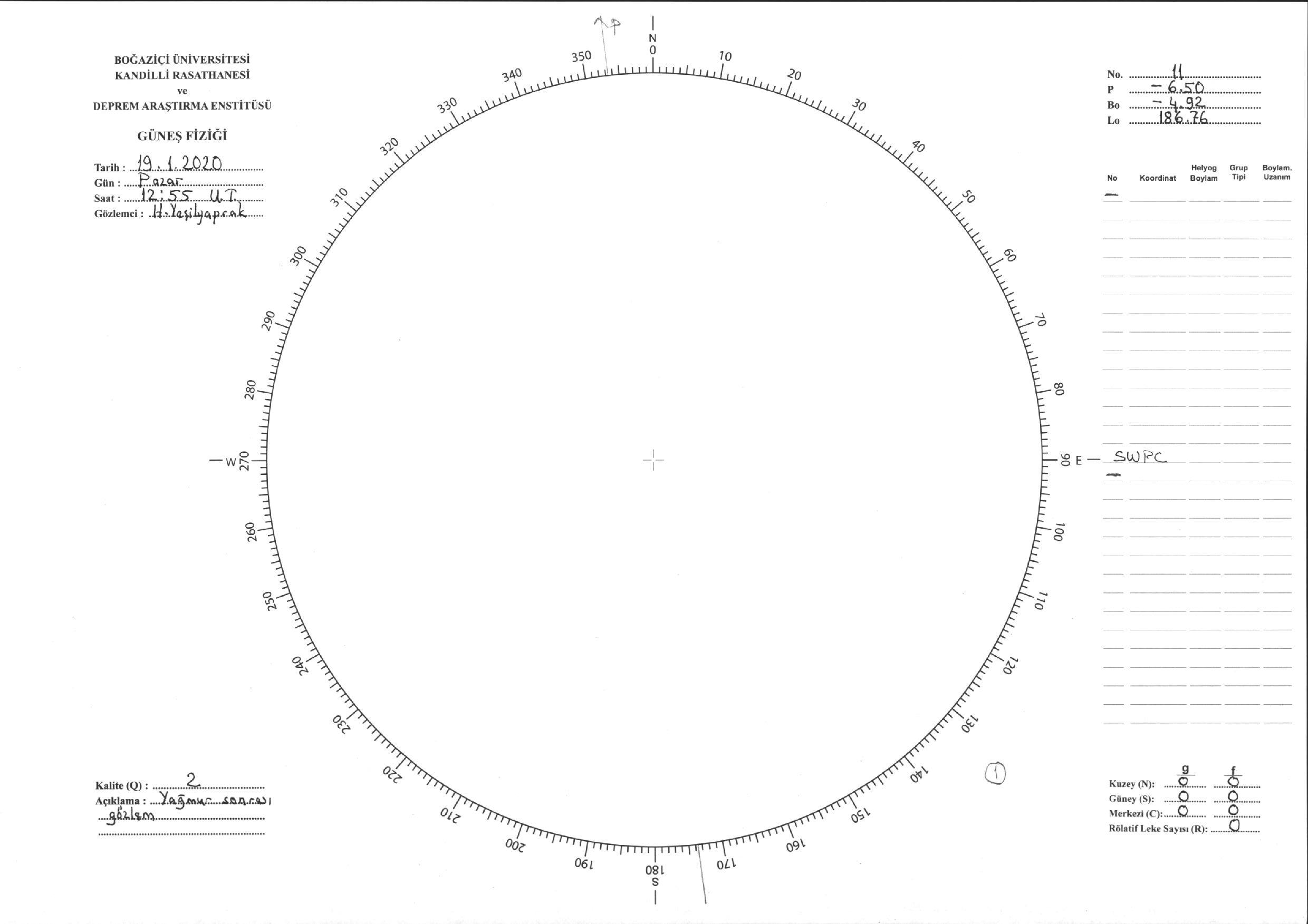 Güneş Lekesi Çizimi - 19.01.2020