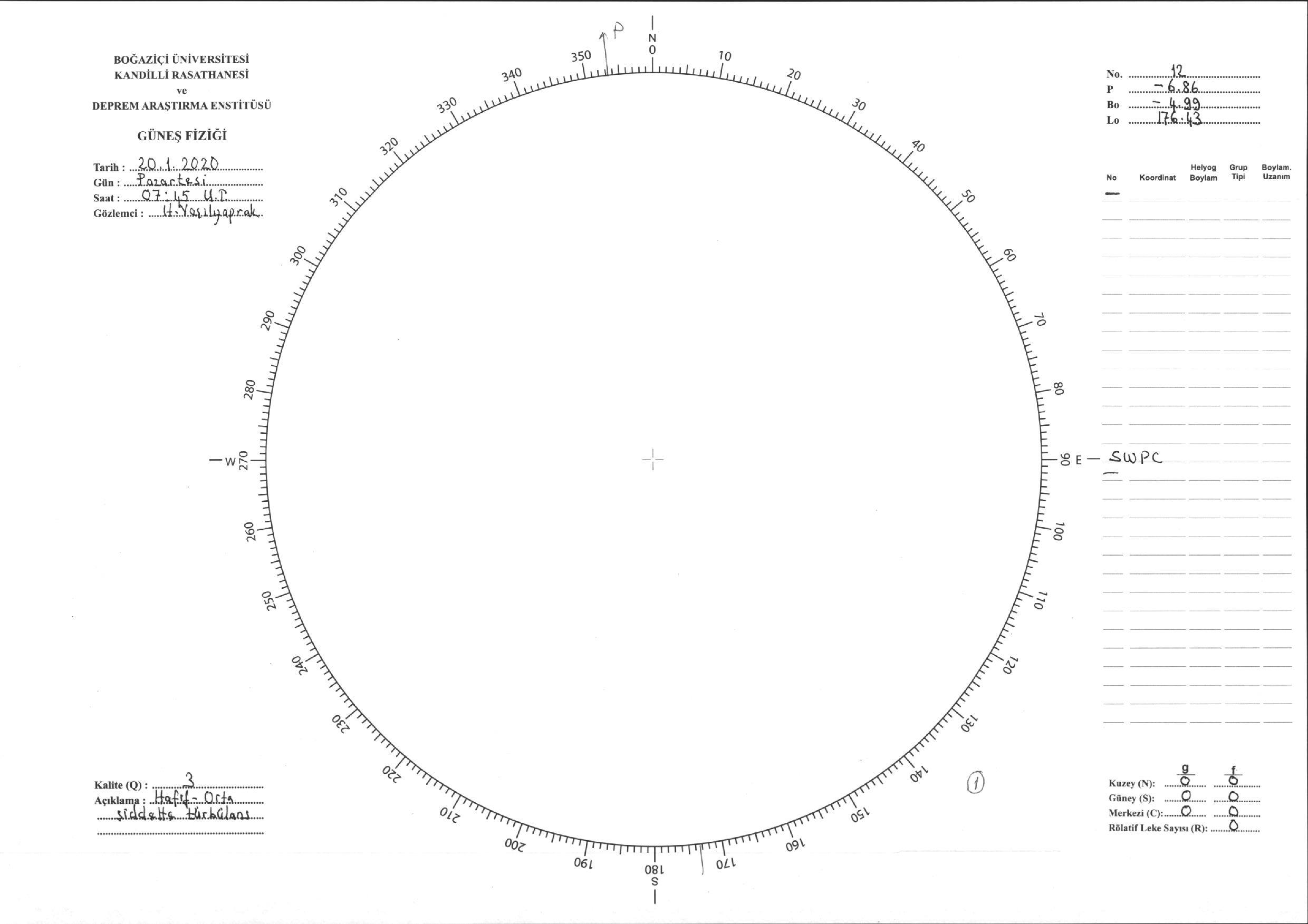 Güneş Lekesi Çizimi - 20.01.2020