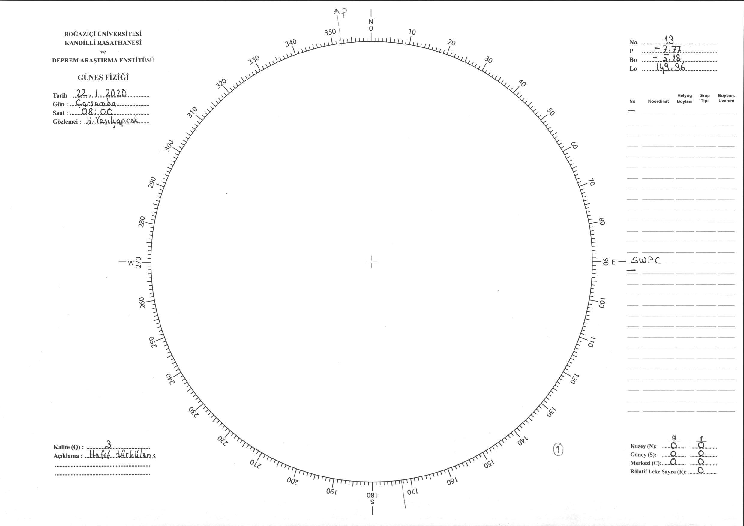 Güneş Lekesi Çizimi - 22.01.2020