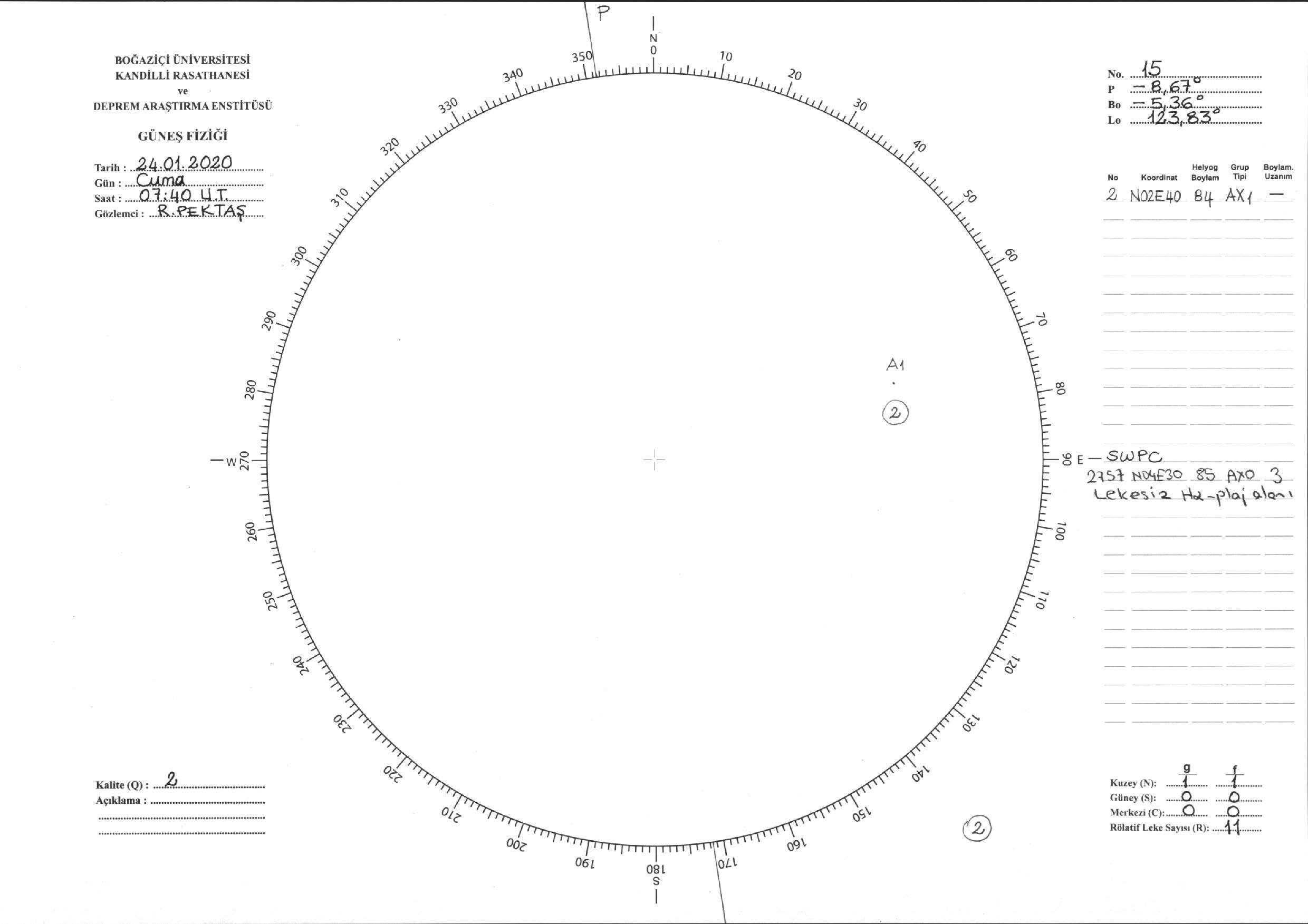 Güneş Lekesi Çizimi - 24.01.2020