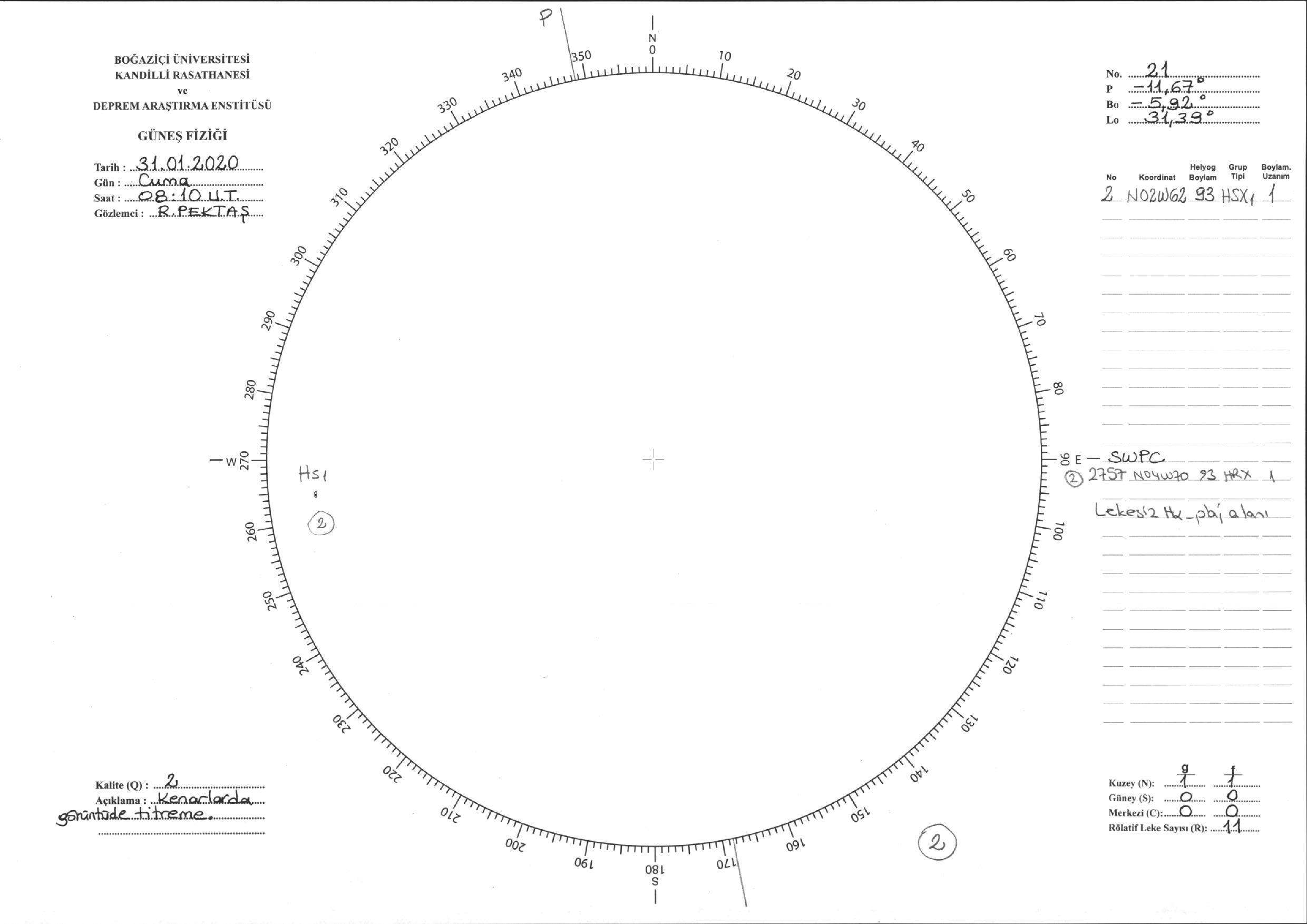 Güneş Lekesi Çizimi - 31.01.2020