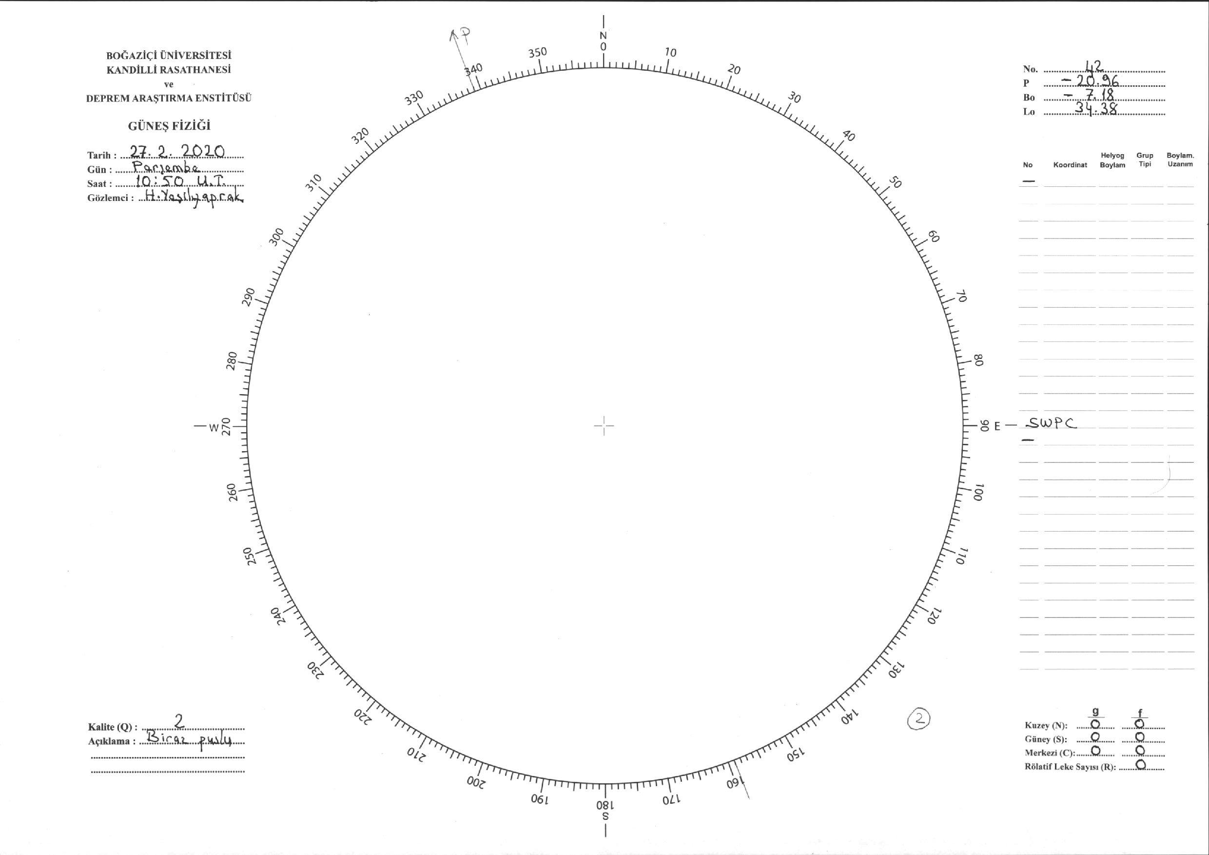 Güneş Lekesi Çizimi - 27.02.2020