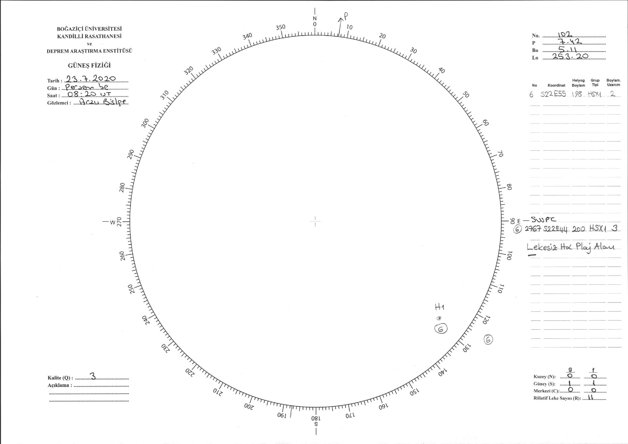 Güneş Lekesi Çizimi - 23.07.2020