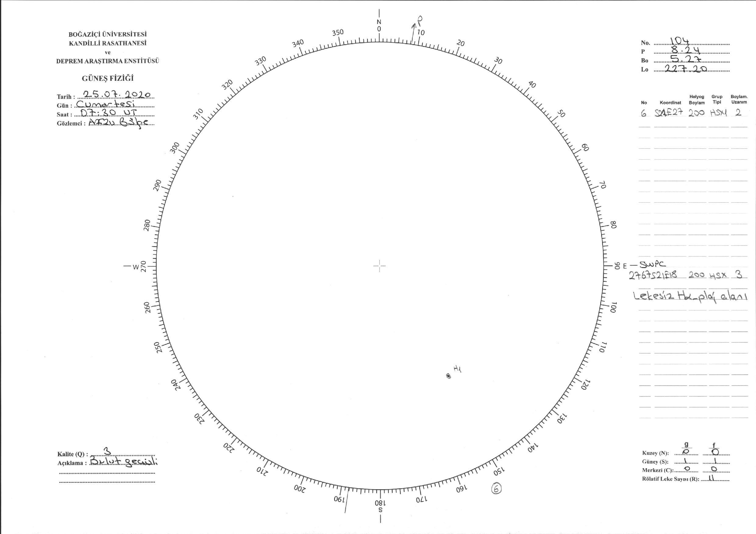 Güneş Lekesi Çizimi - 25.07.2020